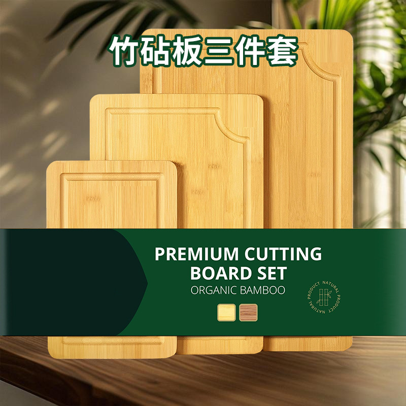 亚马逊竹菜板双面可用竹制菜板三件套家用实木切菜熟食板跨境定制
