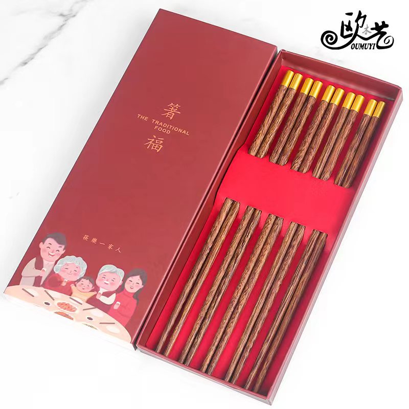 中国式手羽木箸卸売り家庭用実木箸紅木福箸礼箱食器プレゼント箸