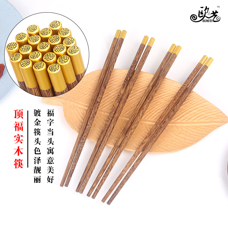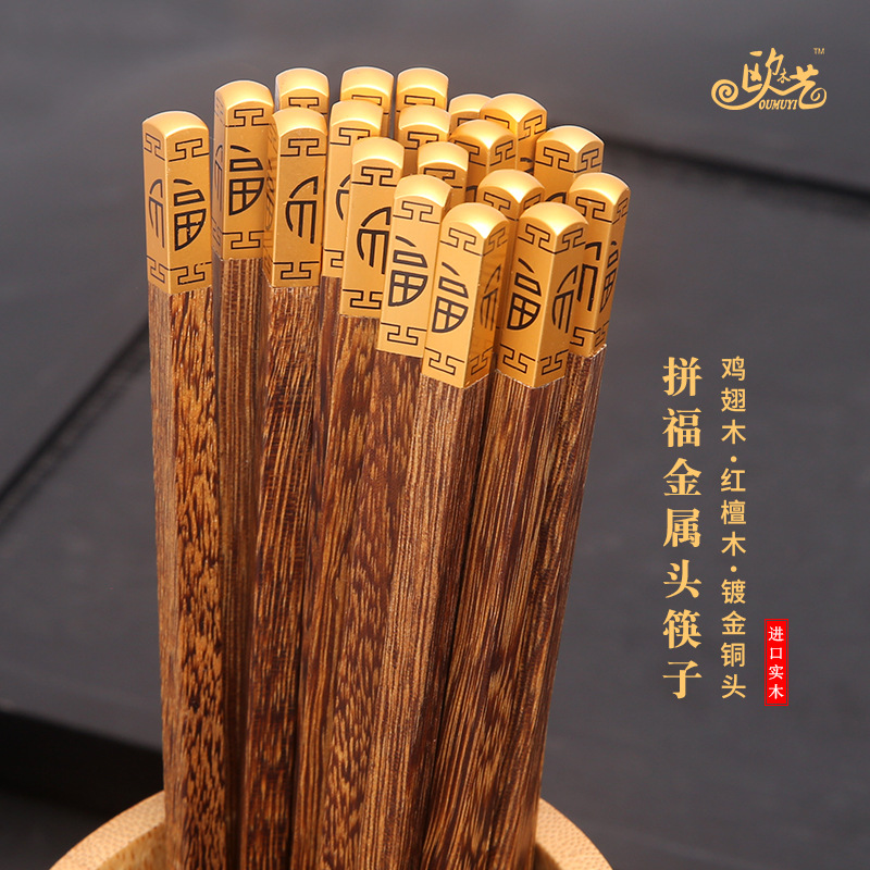 箸家庭用中国式手羽木箸卸売り金属頭紅檀木実木ドーム福箸彫刻ロゴ
