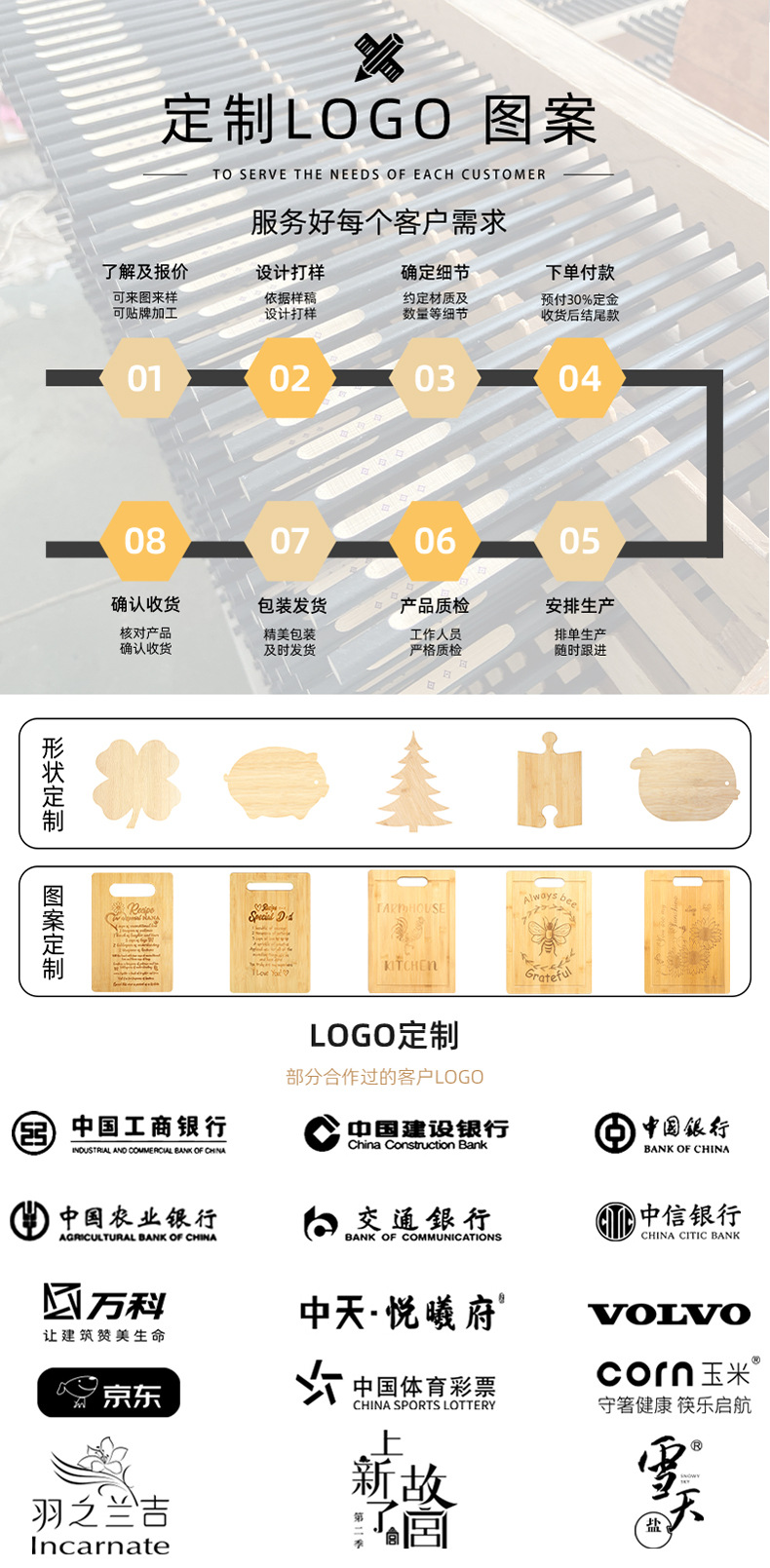 家庭用竹製まな板、取っ手付きまな板、カッティングボード、竹製ナイフボード、フルーツボード、ロゴ刻印入り