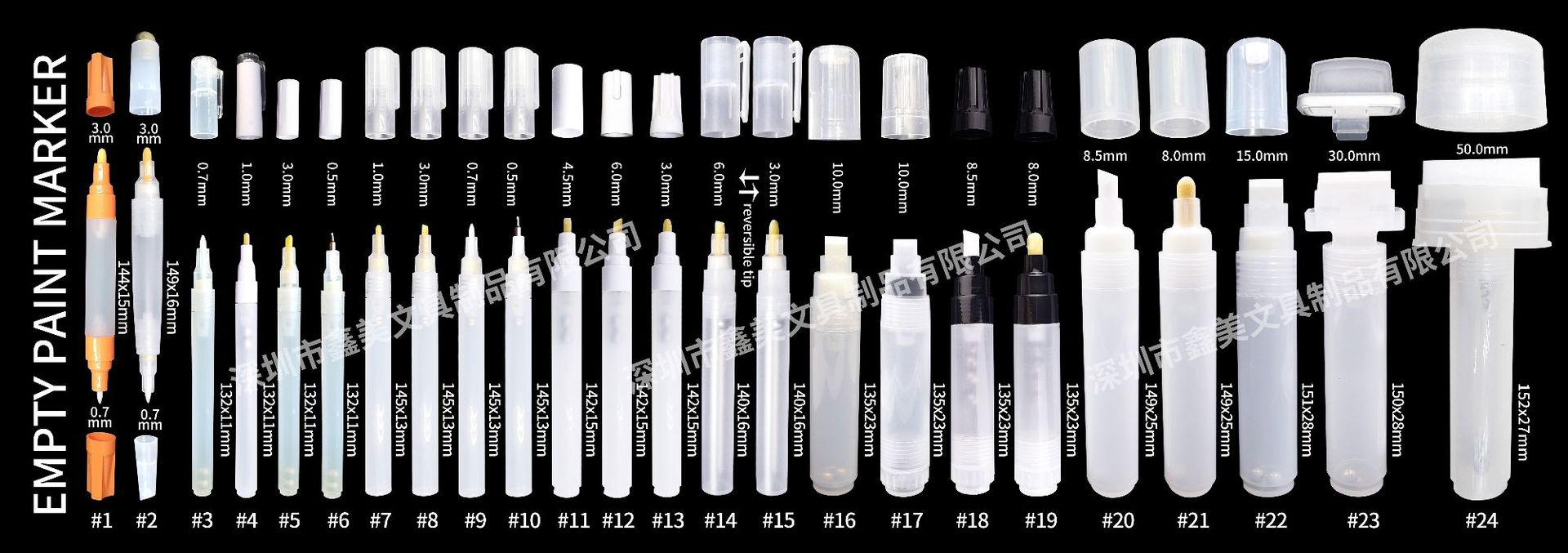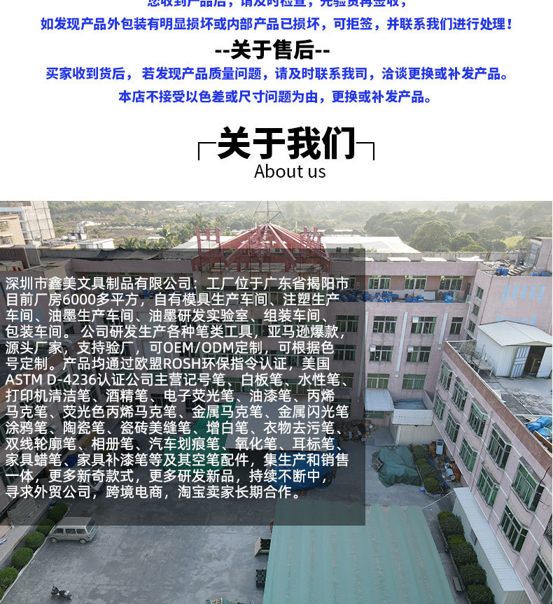 本厂为丙烯马克笔、油漆笔工厂,自有模具、自调墨水,笔形种类繁多,欢迎广大客户前来洽谈下单。