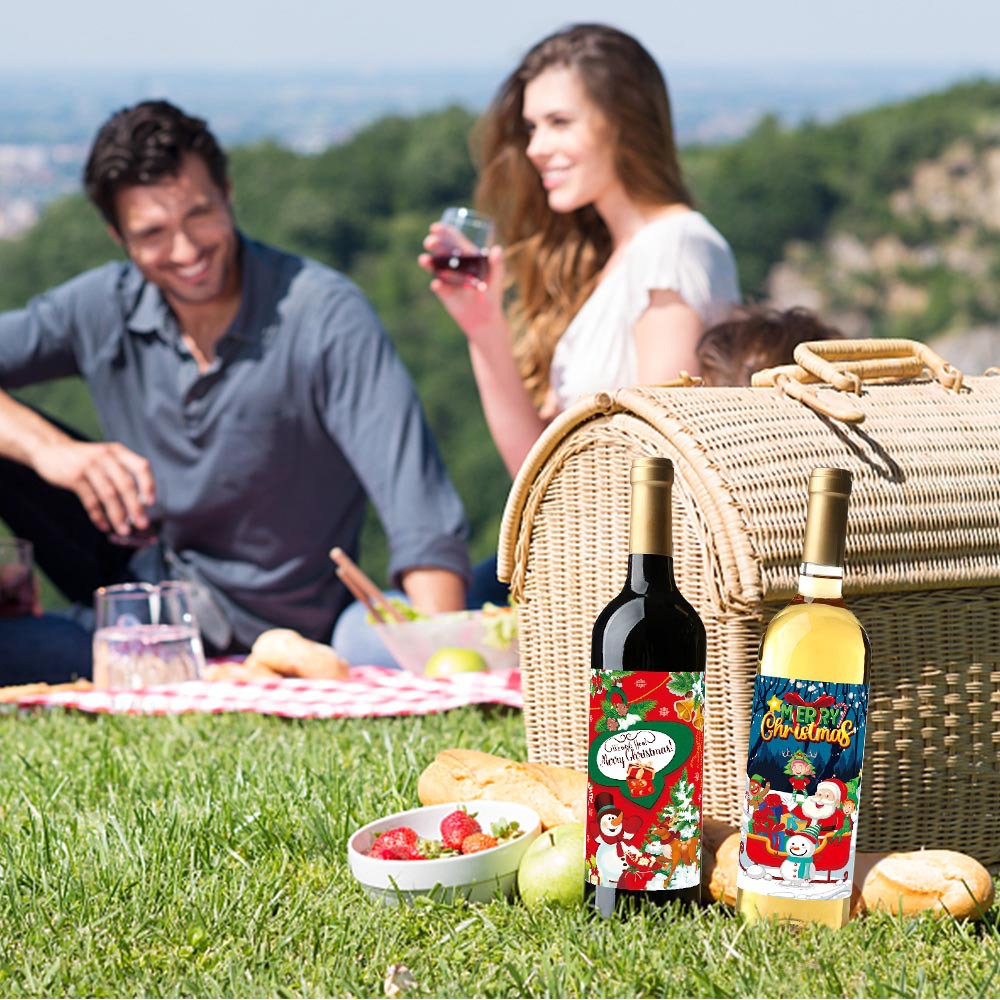 产品用途:圣诞节派对装饰用品,新年聚会气氛布置酒瓶贴纸,圣诞节饮料装饰不干胶贴纸。