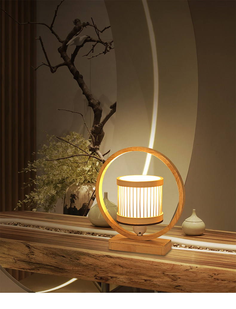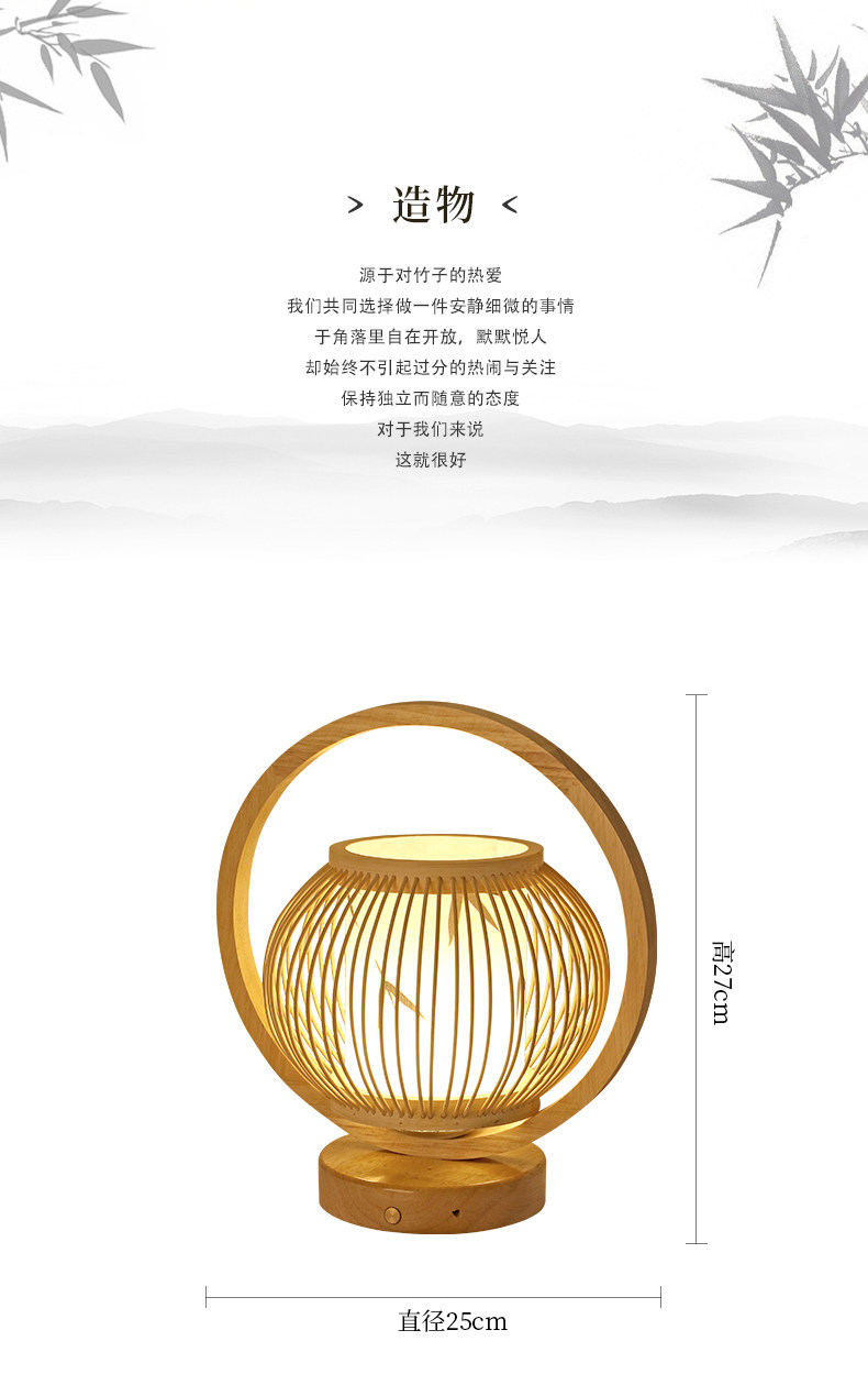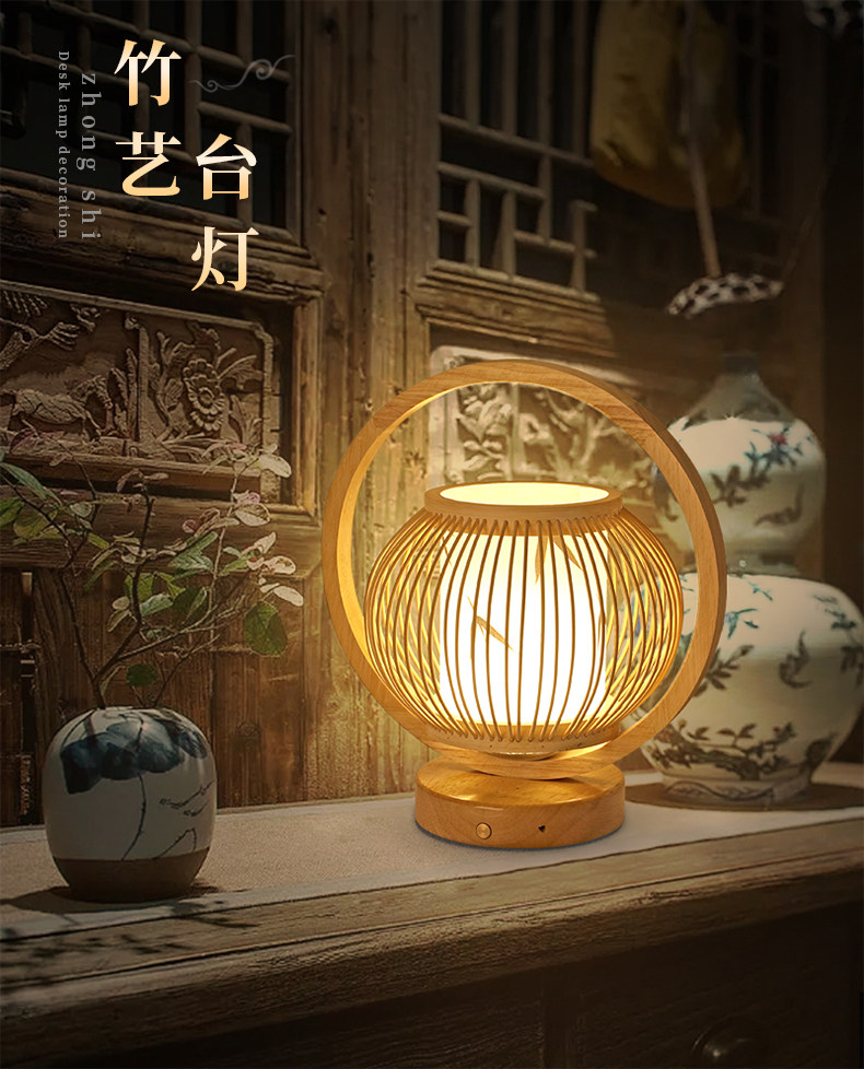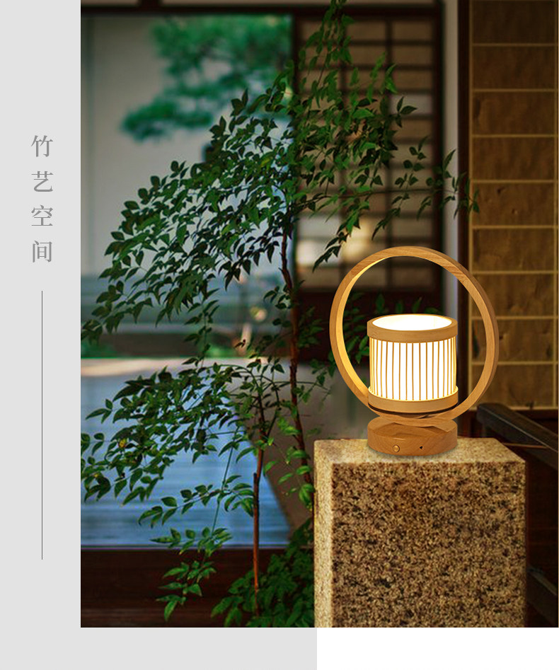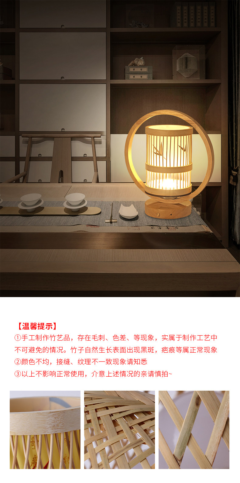 日式和风竹艺装饰台灯创意充电竹编北欧禅意新中式民宿卧室床头灯