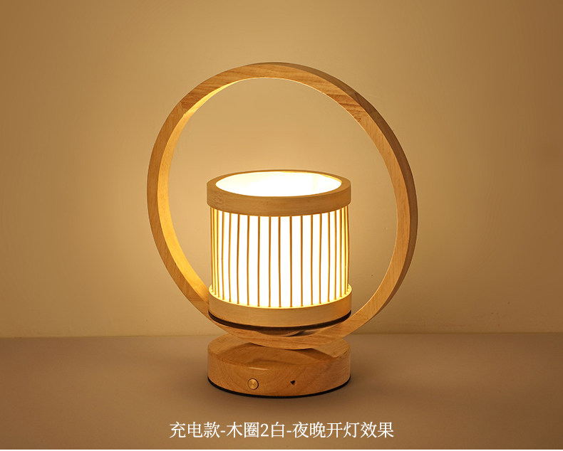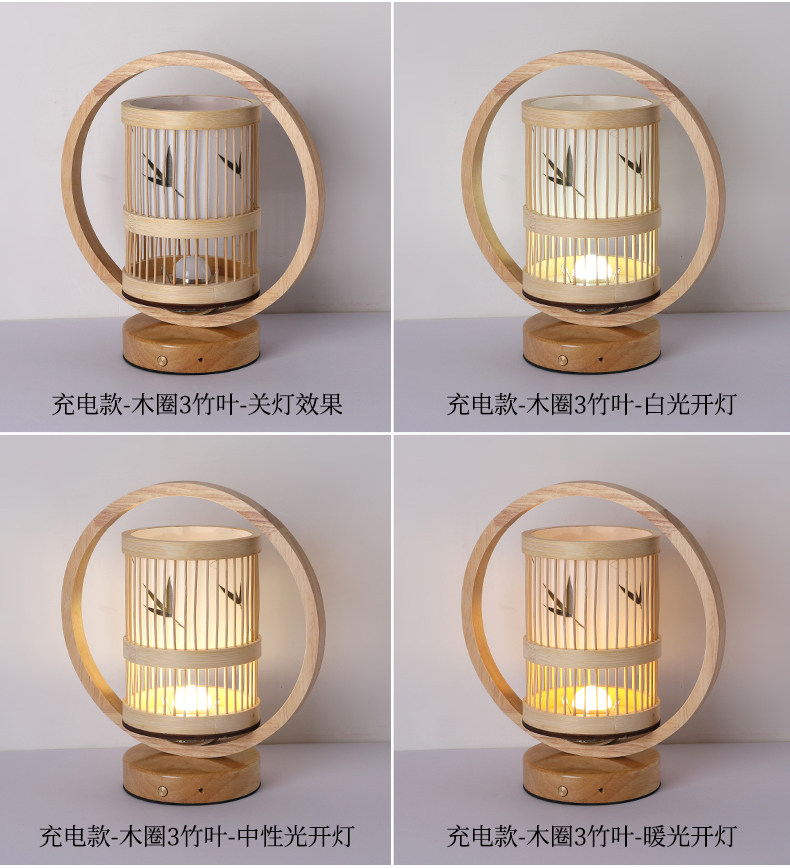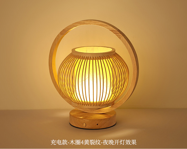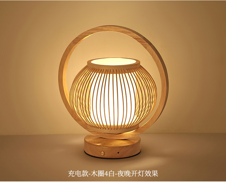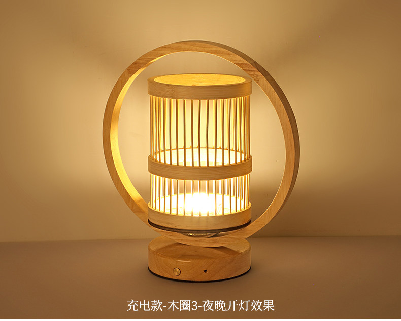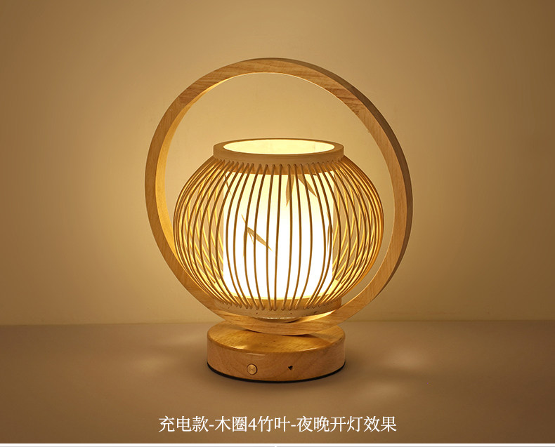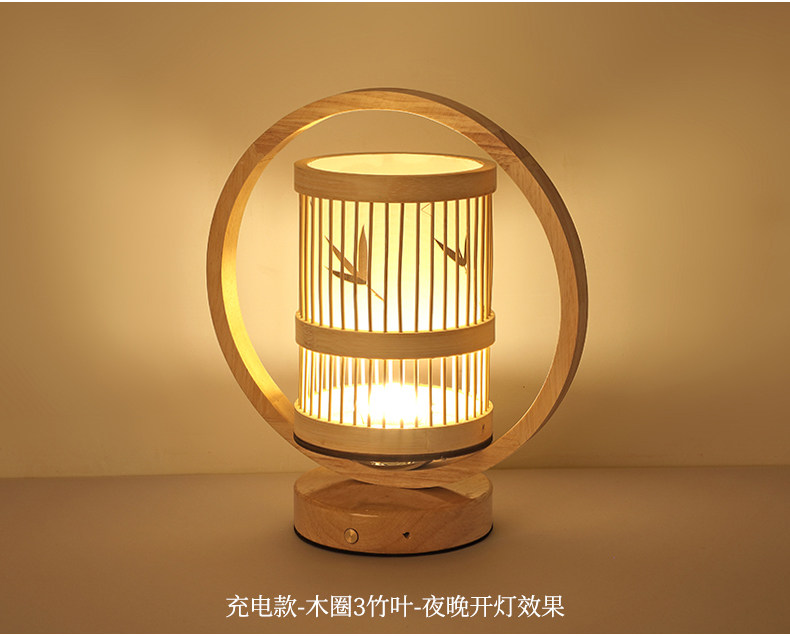 日本式驚き寂風竹編み電気スタンド新中国式禅意夜灯茶室寝室復古ベッドヘッドランプ充電式電気スタンド