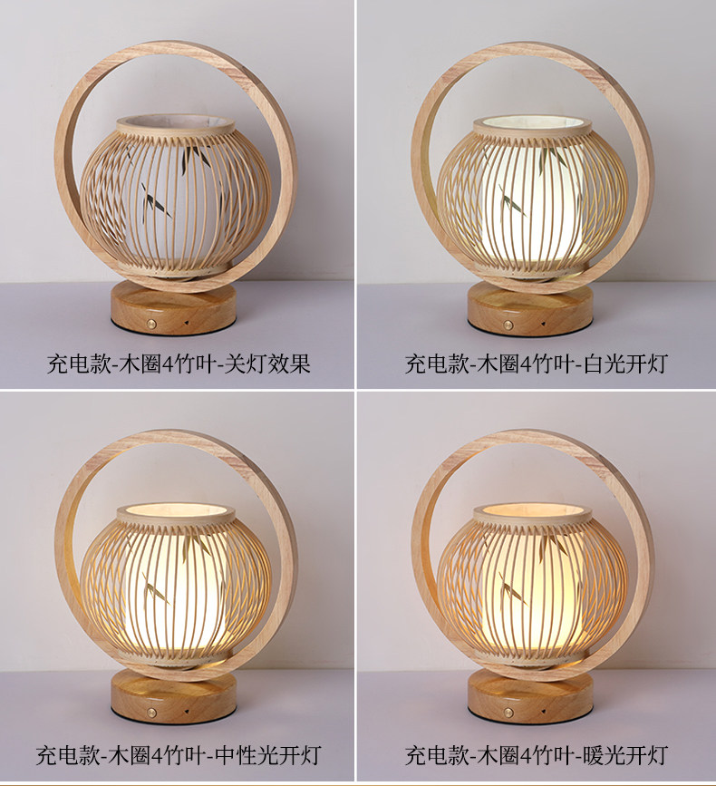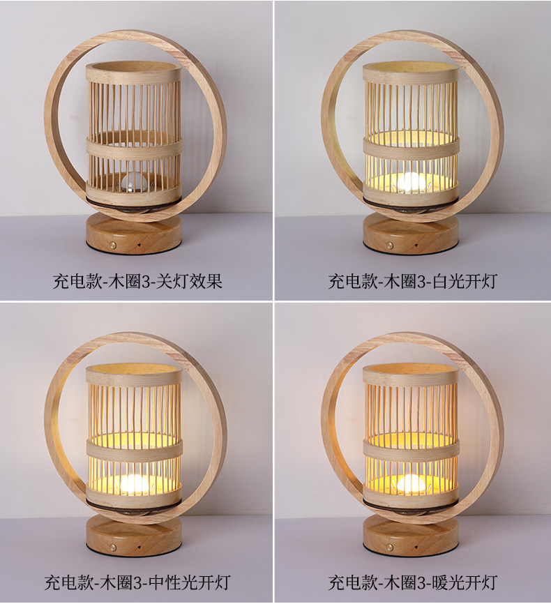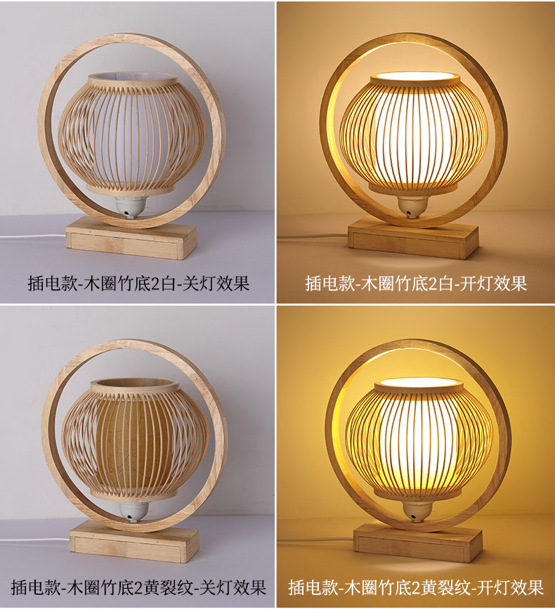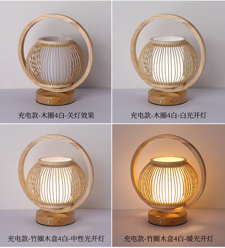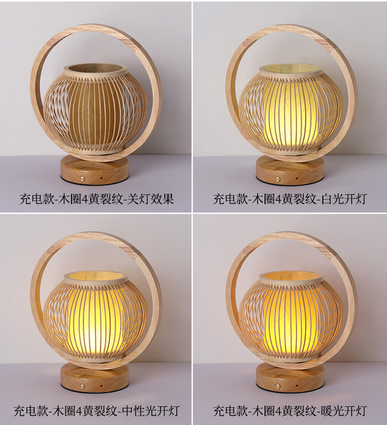 日本式驚き寂風竹編み電気スタンド新中国式禅意夜灯茶室寝室復古ベッドヘッドランプ充電式電気スタンド