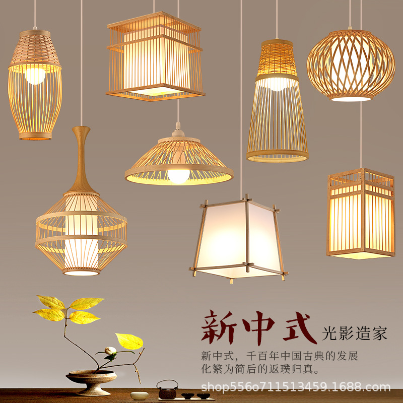 新中国式模造古創意竹編提灯茶室レストラン火鍋店日本式レトロ禅意竹芸シャンデリア
