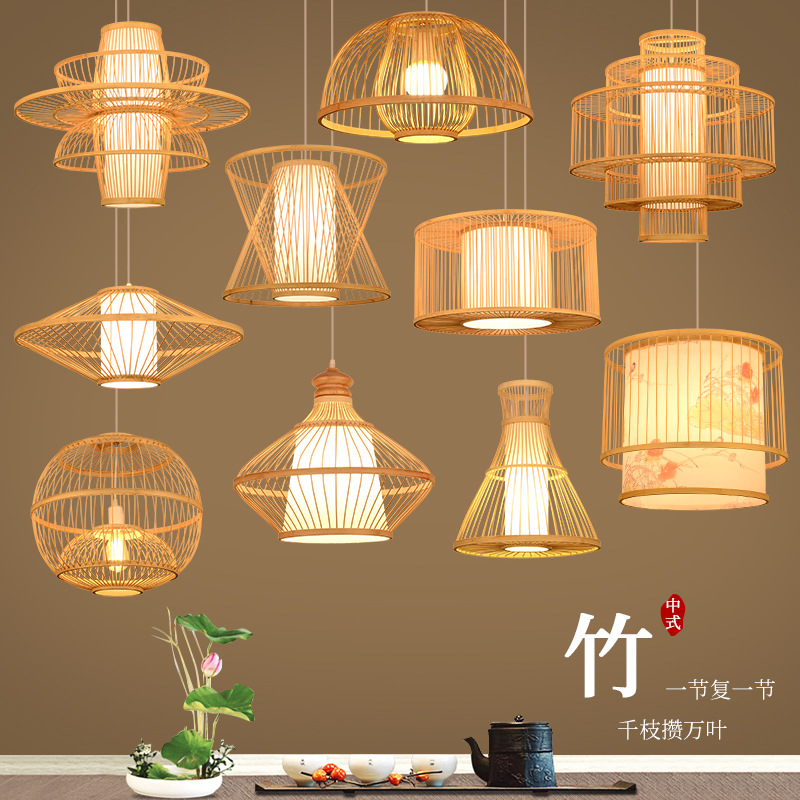 中国式食事シャンデリア茶楼禅意竹芸竹編み田園客間ホテルベランダ日本式提灯畳灯具