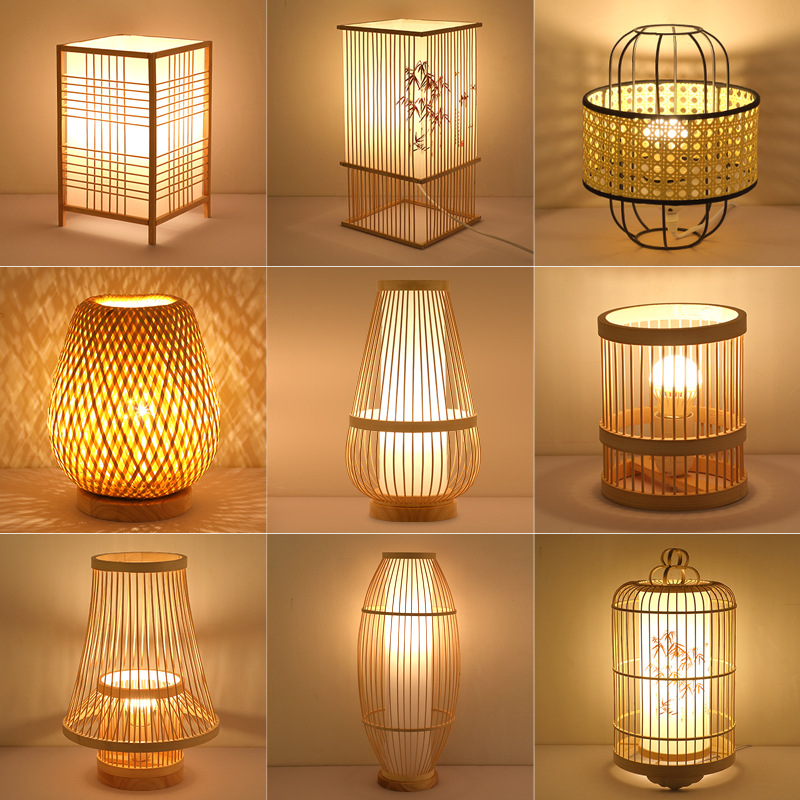 竹編み灯中国風茶室民宿客室客間禅意茶新中国式提灯創意日本式竹芸電気スタンド