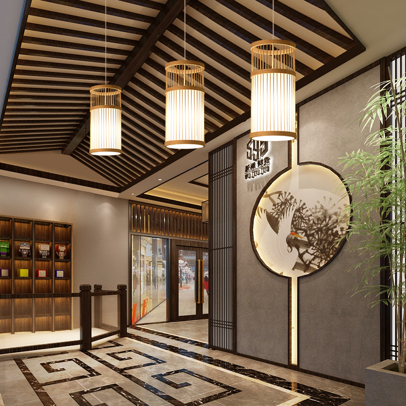 日本式禅意茶室民宿中国風レストラン竹芸竹編シャンデリア中国式火鍋店提灯芸術灯具