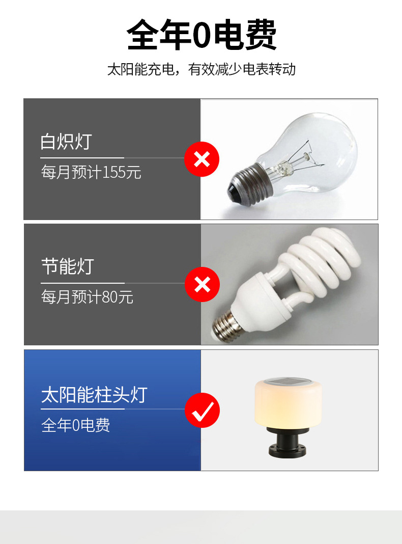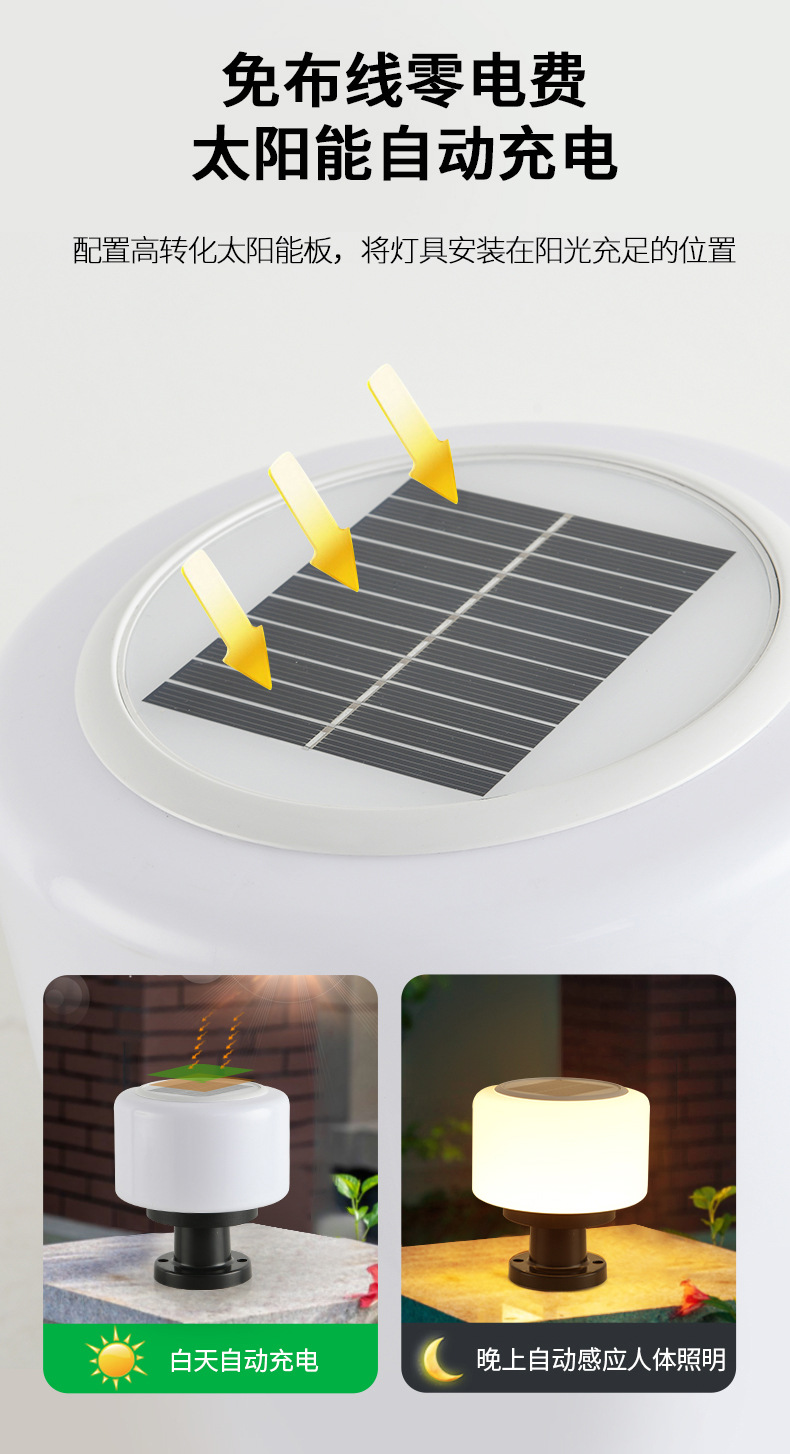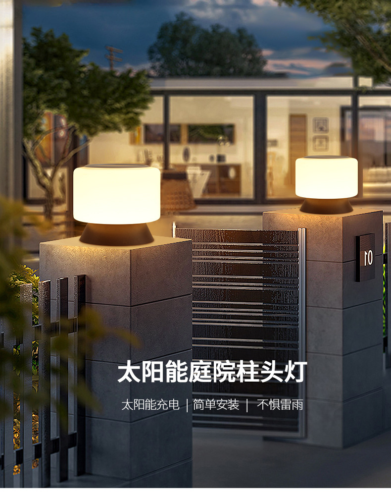 太阳能柱头灯 超亮家用围墙感应防水户外花园别墅庭院大门柱子灯
