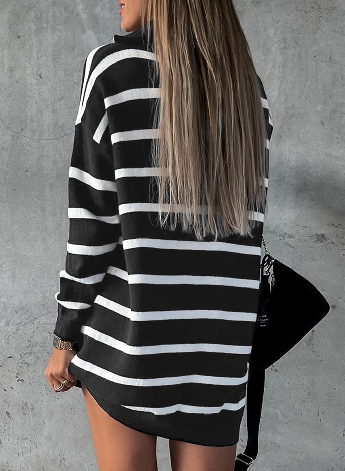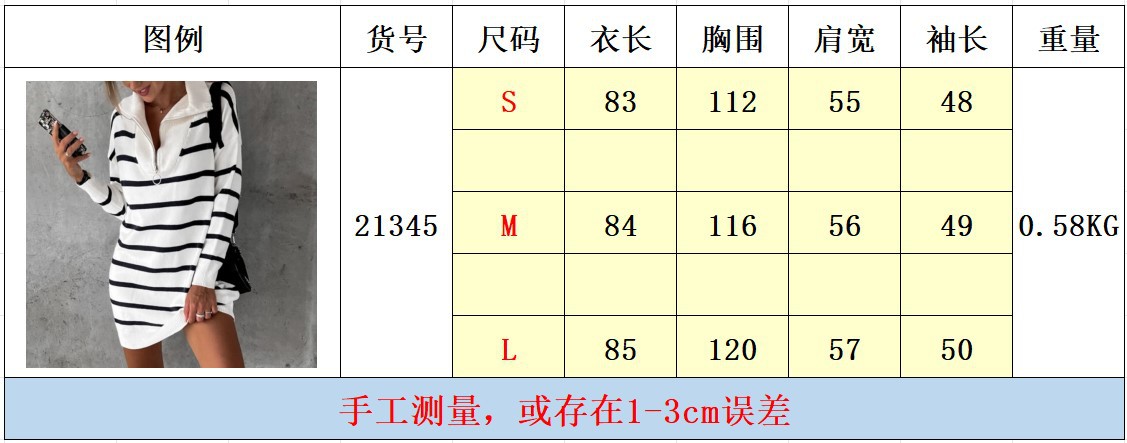 アマゾンクロスボーダー女装欧米秋冬新作vネック長袖セーターストライプゆるいカジュアルニットワンピース