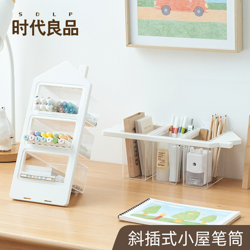 多機能筆筒大容量斜め挿し式小屋プラスチック収納箱学生オフィスデスクトップペンホルダー
