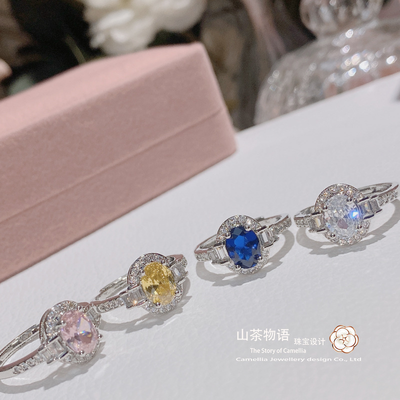 山茶高定ジュエリーデザイン青コランダム彩宝指輪フランス贅沢高級模造天然透輝石指輪