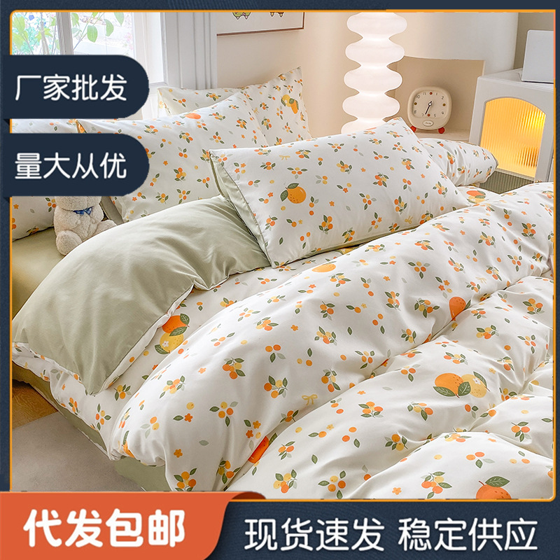 新純綿公安青三点セット単位深藍シーツ布団カバー寮四点セット寝具工場卸売り