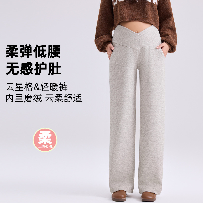 孕妇阔腿裤春秋时尚低腰磨绒舒适裤外穿宽松休闲交叉托腹孕妇裤子