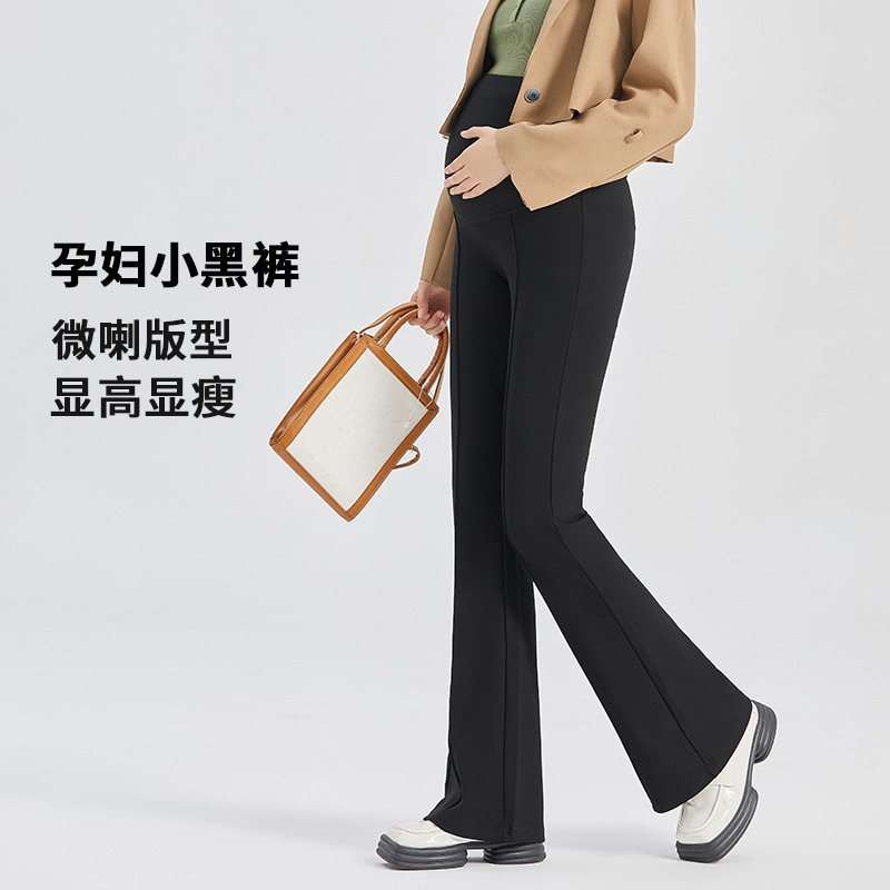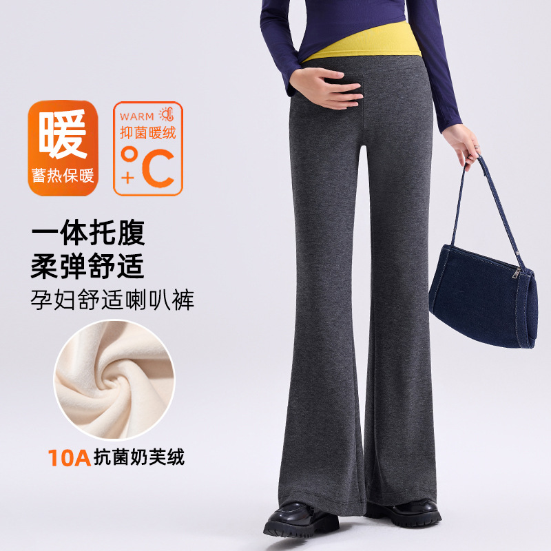 孕妇裤子秋冬时尚休闲外穿磨绒喇叭裤一体托腹高弹修身显瘦孕妇装