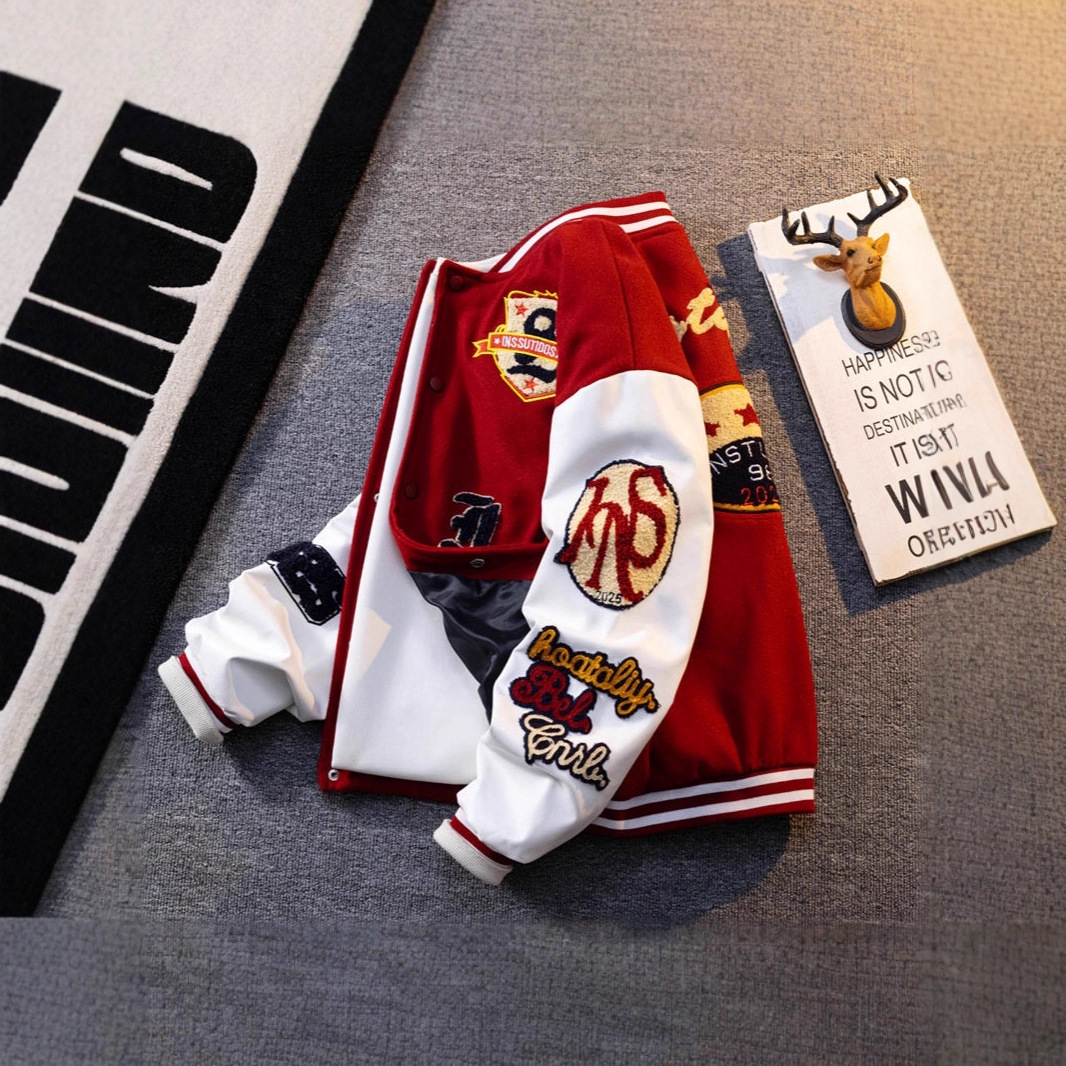 高街拼接3D美式棒球服外套美式街头飞行员上衣小众休闲宽松夹克