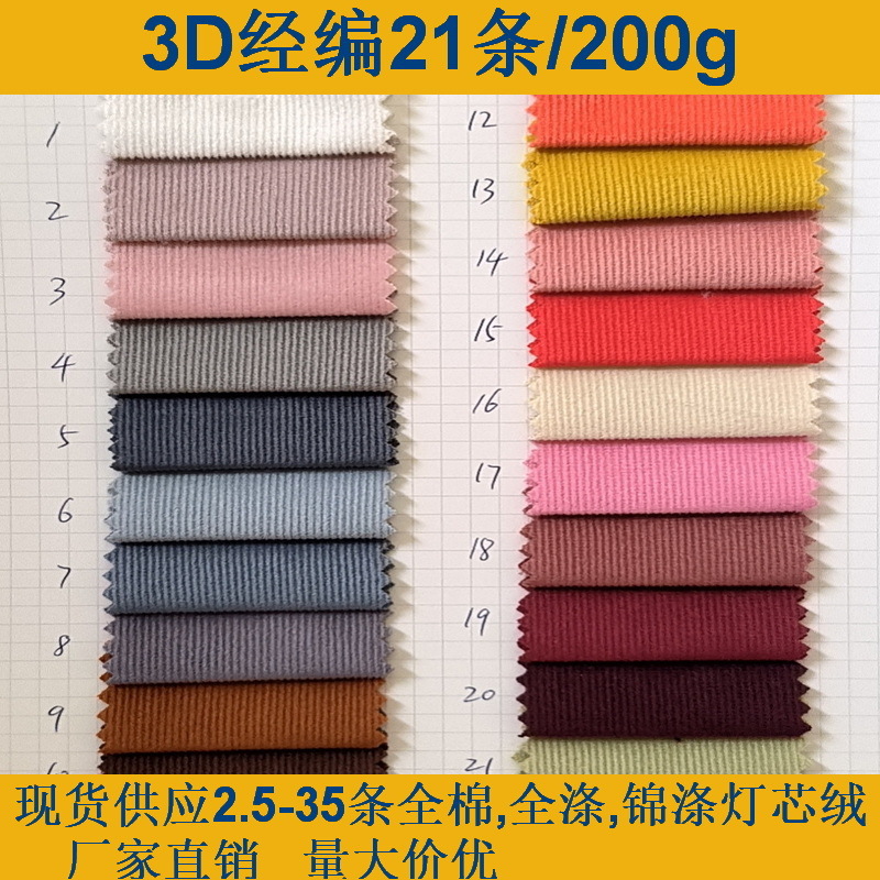 现货 3D经编21条21坑灯芯绒布料 蚕丝绒服装箱包玩具 沙发套面料