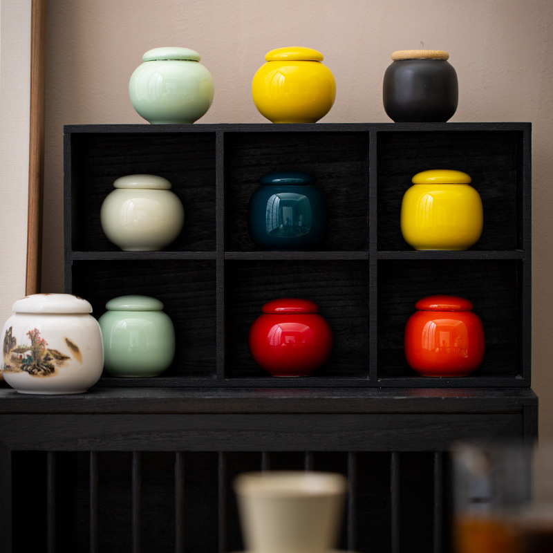 陶瓷色釉小号茶叶罐便携防潮密封罐绿茶白茶存储红茶包装印刷logo