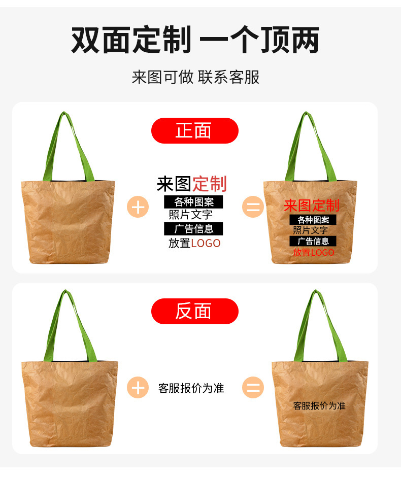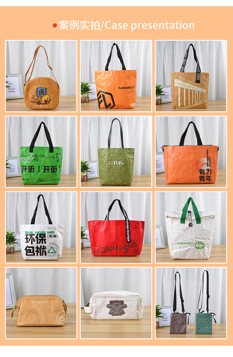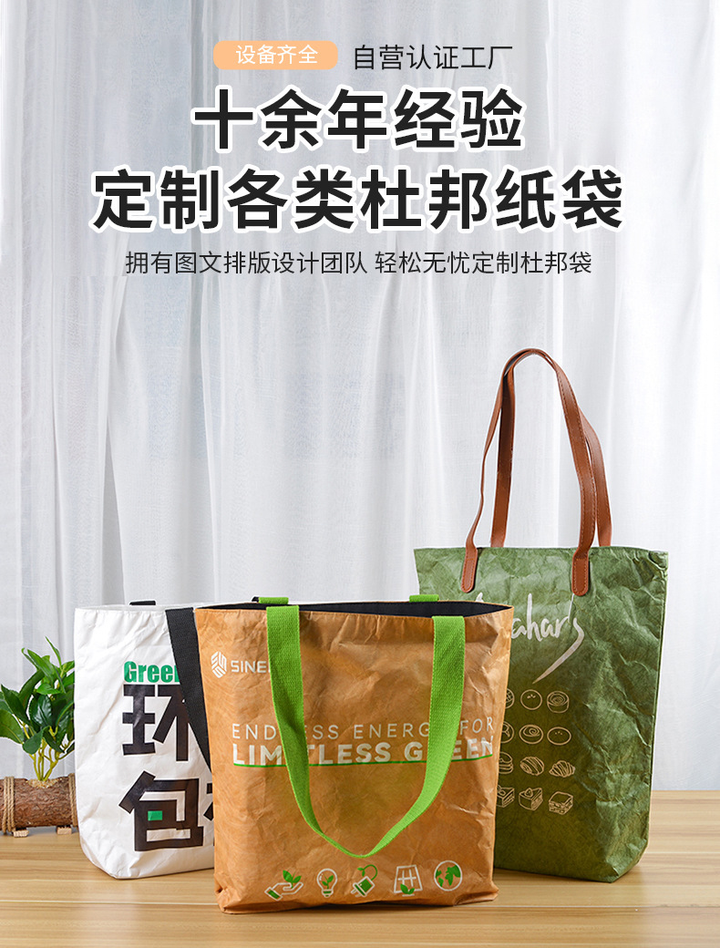 メーカー卸売 ヴィンテージ デュポン紙バッグ カスタム 洗えるトートバッグ オーダーメイド 牛革デュポン紙ハンドバッグ ロゴ入り