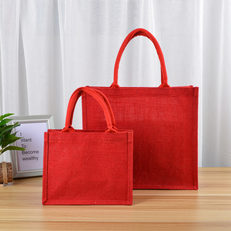 メーカー卸売り赤い麻布手提げ袋ギフトバッグ環境保護収納袋ショッピング手描きdiy外出手提げ袋