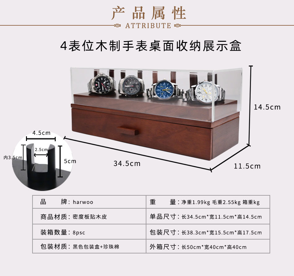 国境を越えた専属現物4格腕時計ジュエリーケースジュエリーケース透明収納ケース透明包装展示ケース