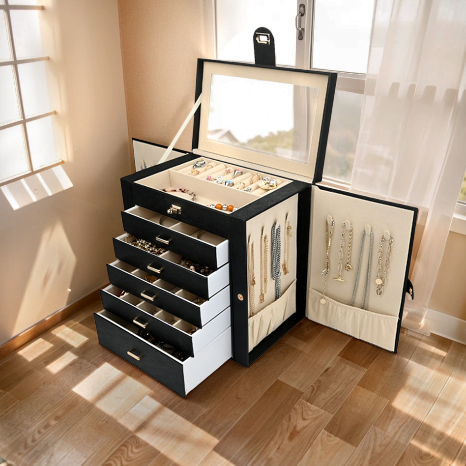 メーカー卸売り大容量ジュエリーケース六層革ジュエリー指輪ネックレスジュエリーケース多層アクセサリー収納ケース