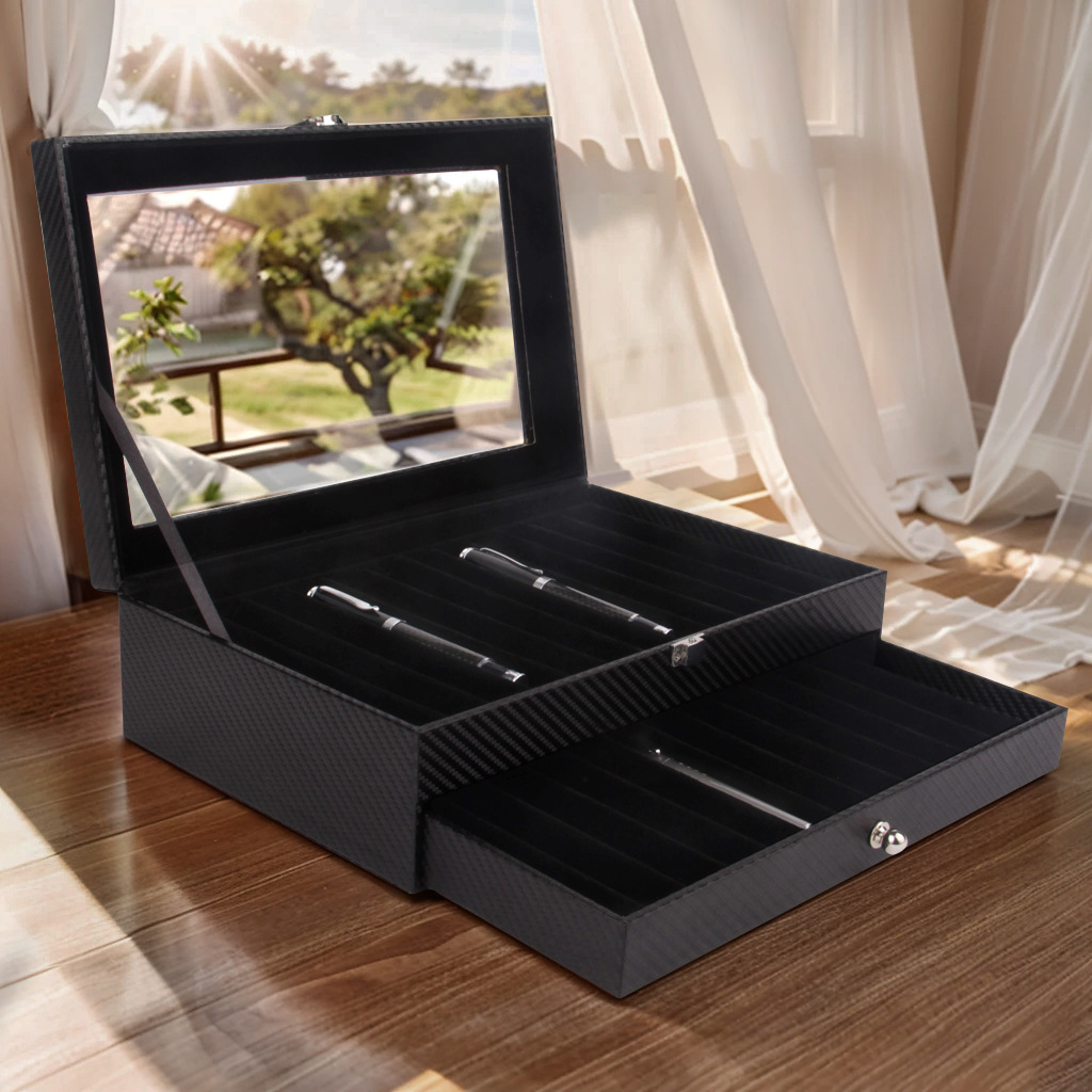 現物皮質ペンケース12 24 36本ペン展示ケース黒色炭素繊維ペンケース収納ケース卸売り