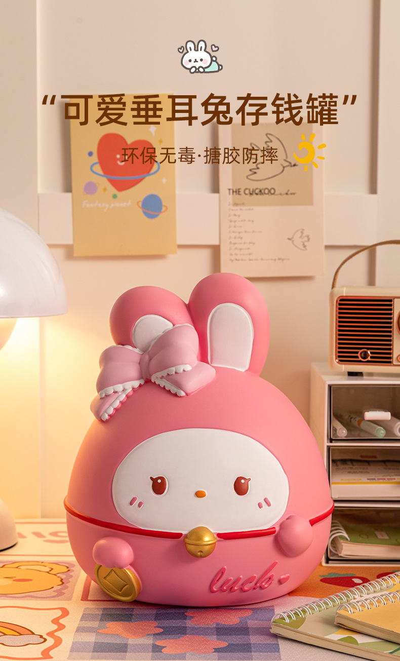 露露うさぎ貯金箱かわいい創意的なエナメルは転んでも保存できます。貯金箱子供のおもちゃの祝日プレゼントをもらえます。