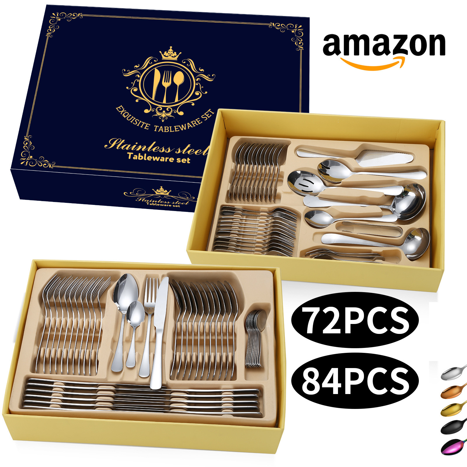 アマゾン72/84点セット工場直供現物ホテルステンレス食器ステーキナイフフォークスプーン共用部品