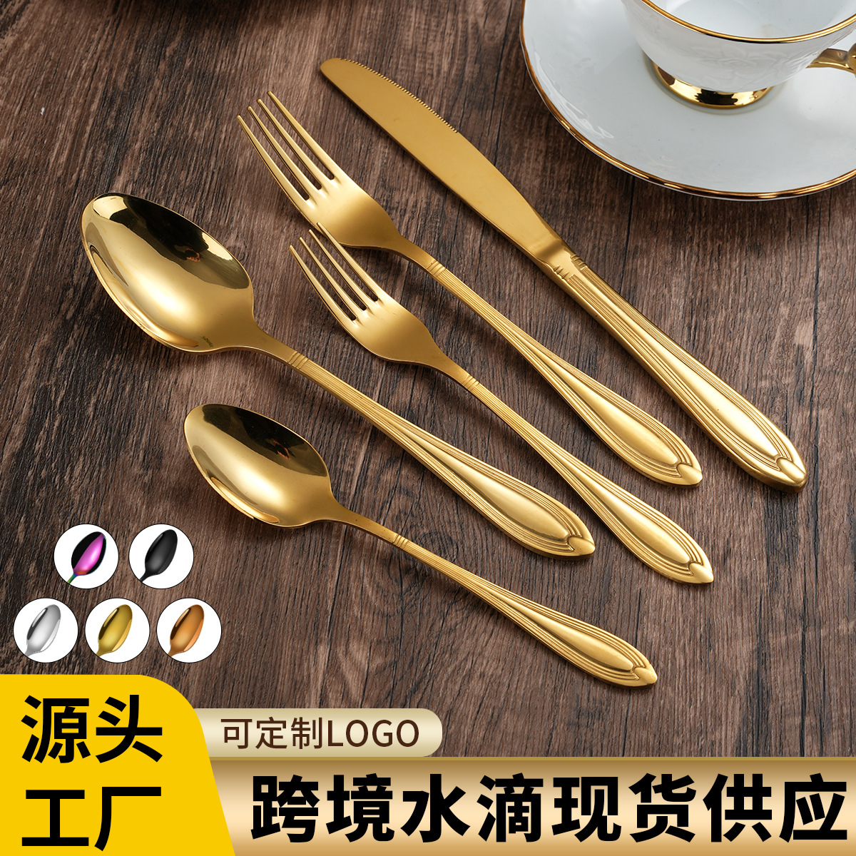中東シリーズ越境ステンレス食器6本入pvc礼袋セット小蛮腰金色洋食ナイフフォークスプーン