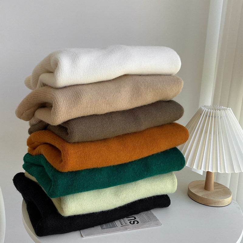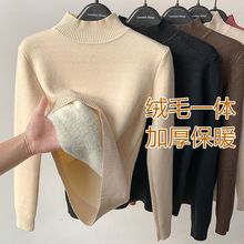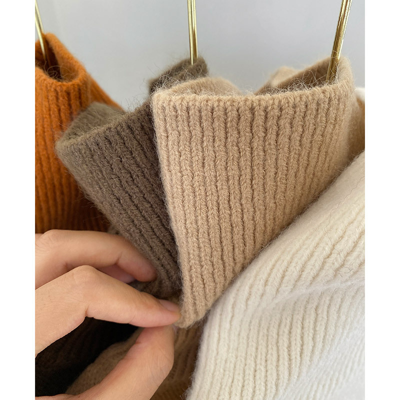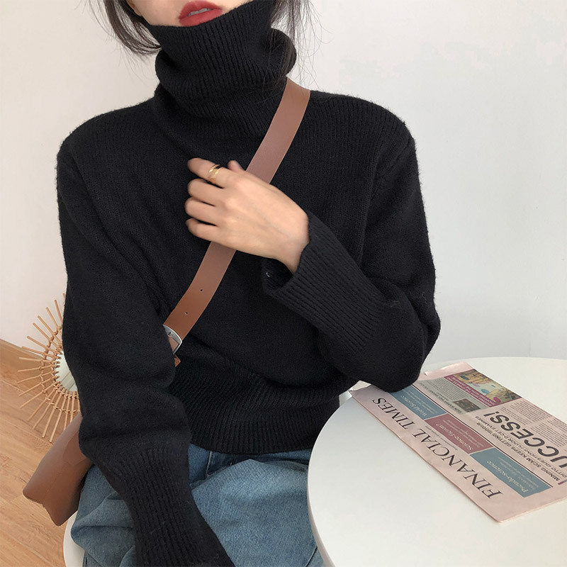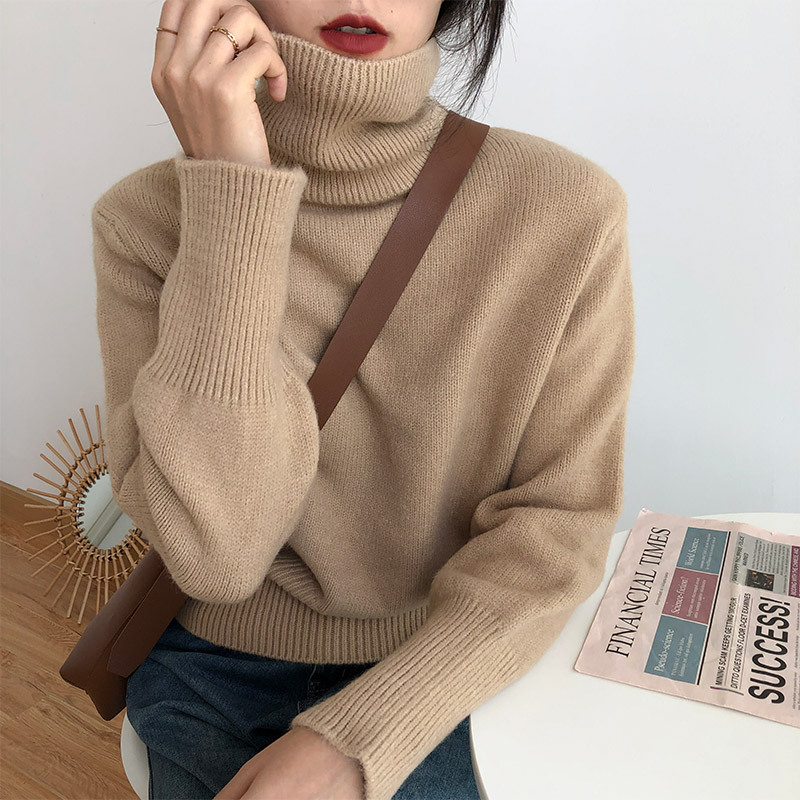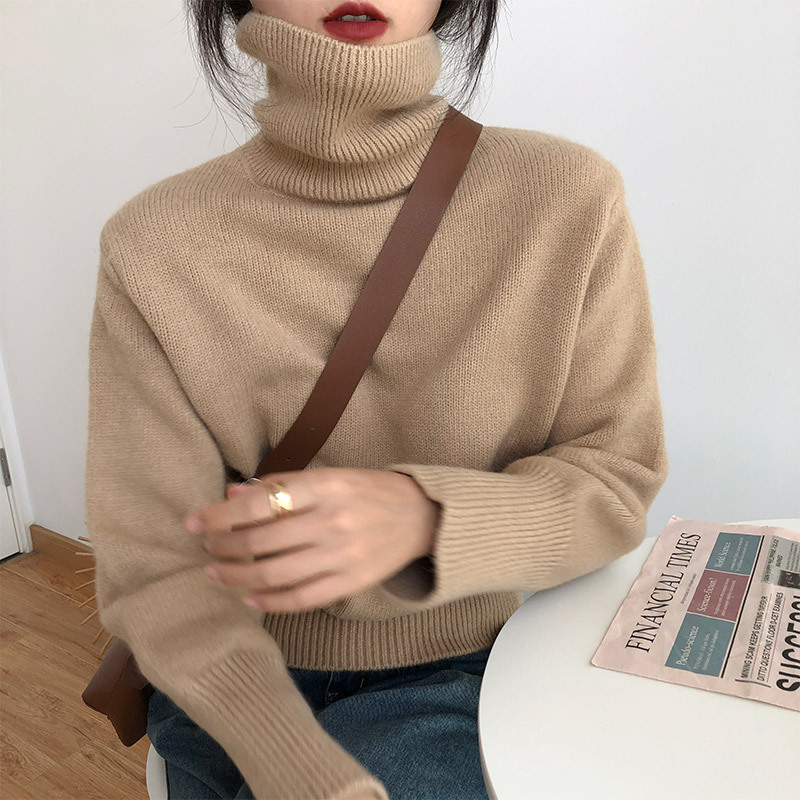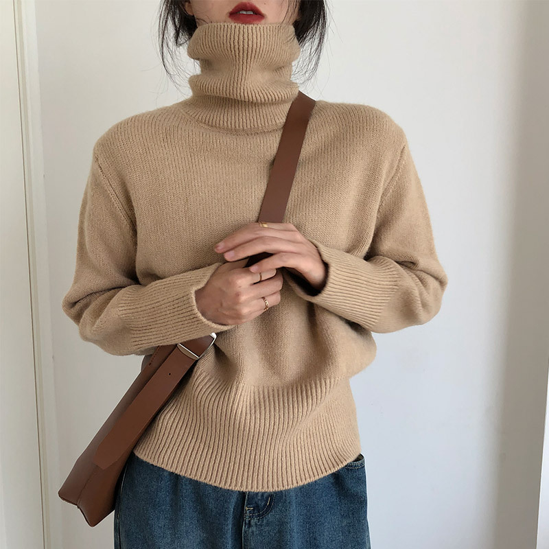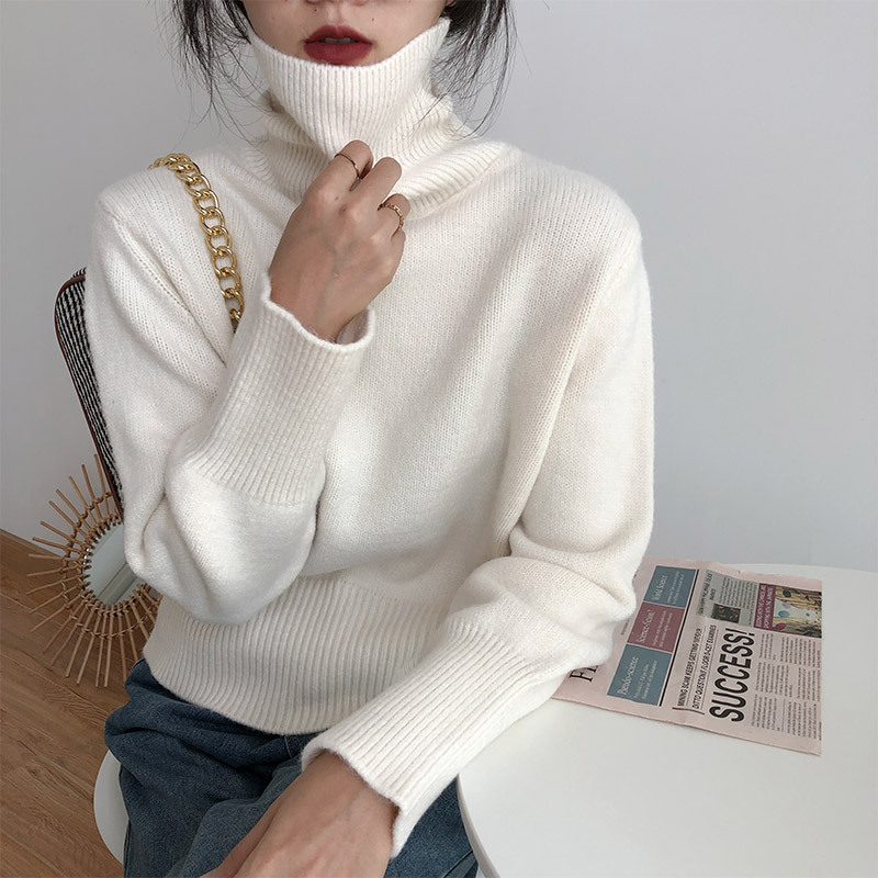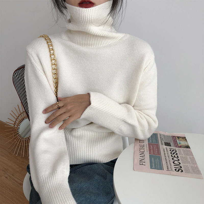 高襟の純色のニットの底のシャツの上着の女性の秋冬の新型は厚くて、モチモチとしています。