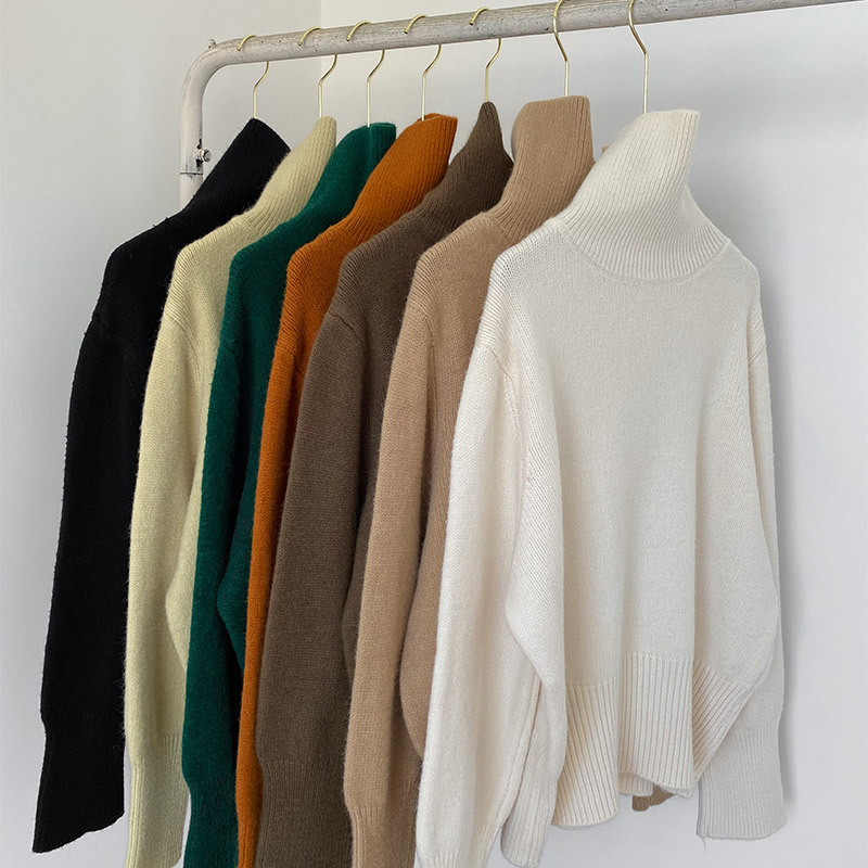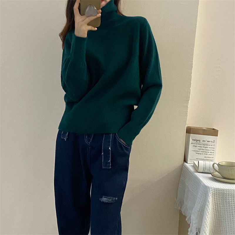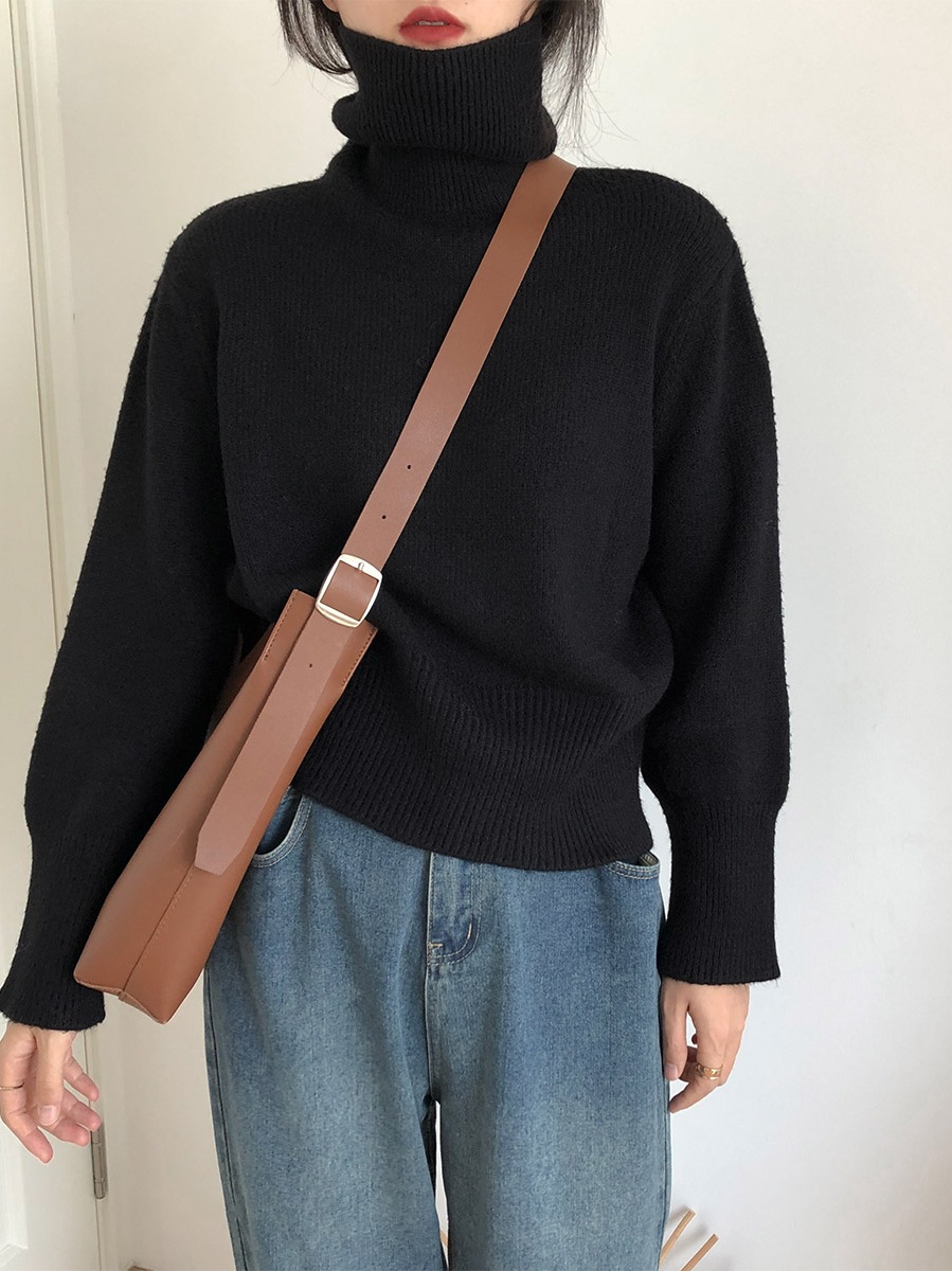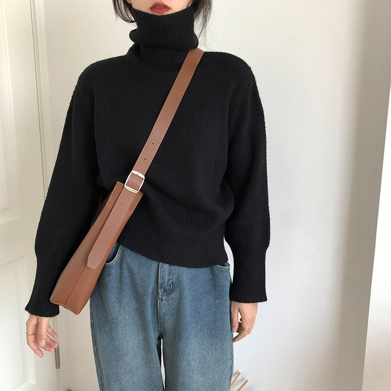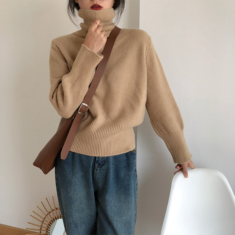 シンプルな基本的なタートルネックのセーターはゆったりしています。