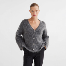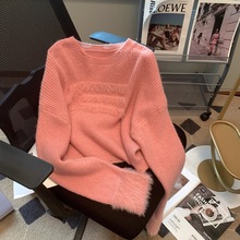 ミンクファー厚手セーターコート レディース 秋冬 ゆったり ロング丈 ニットカーディガン カジュアル 万能 長袖