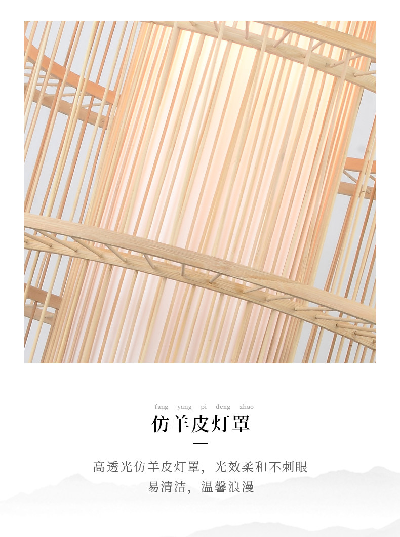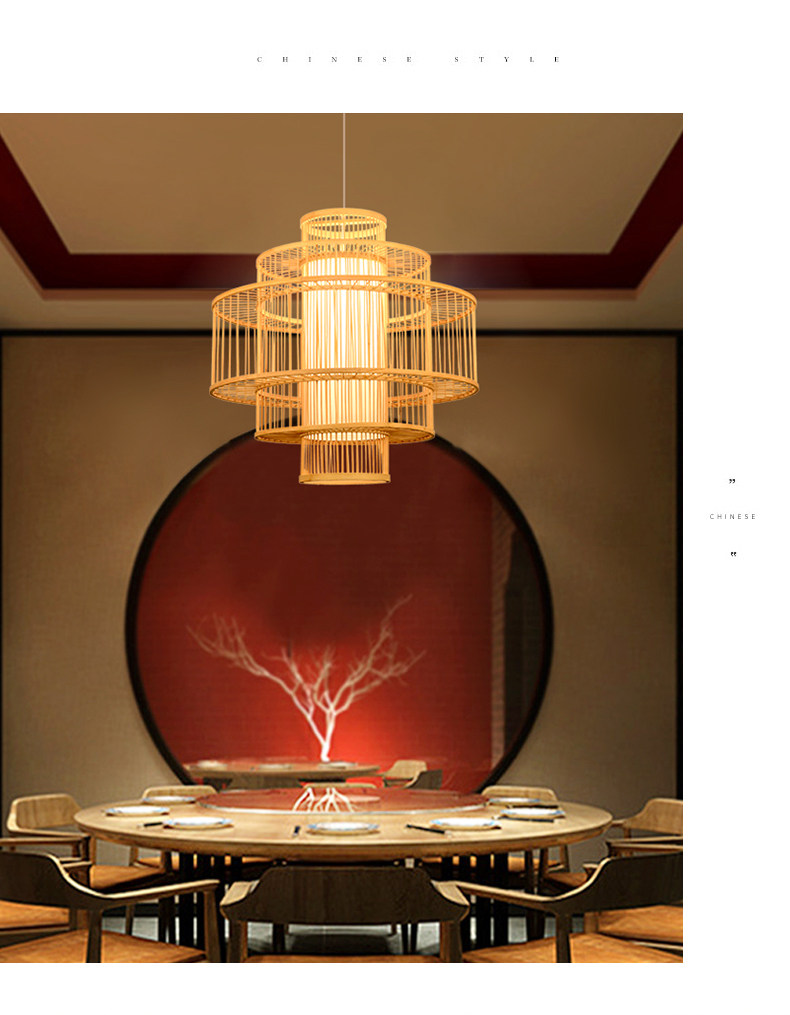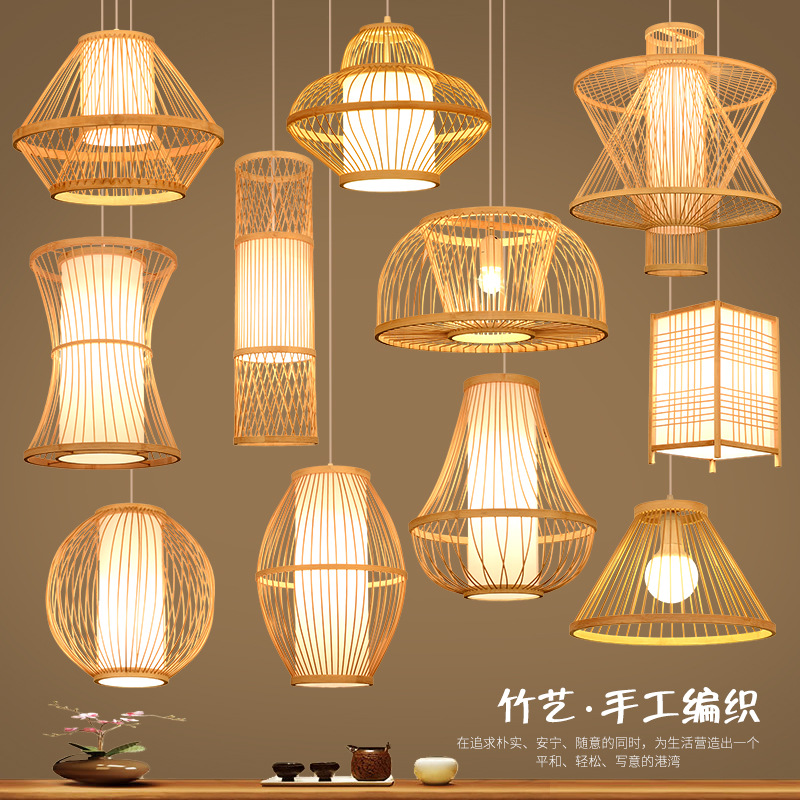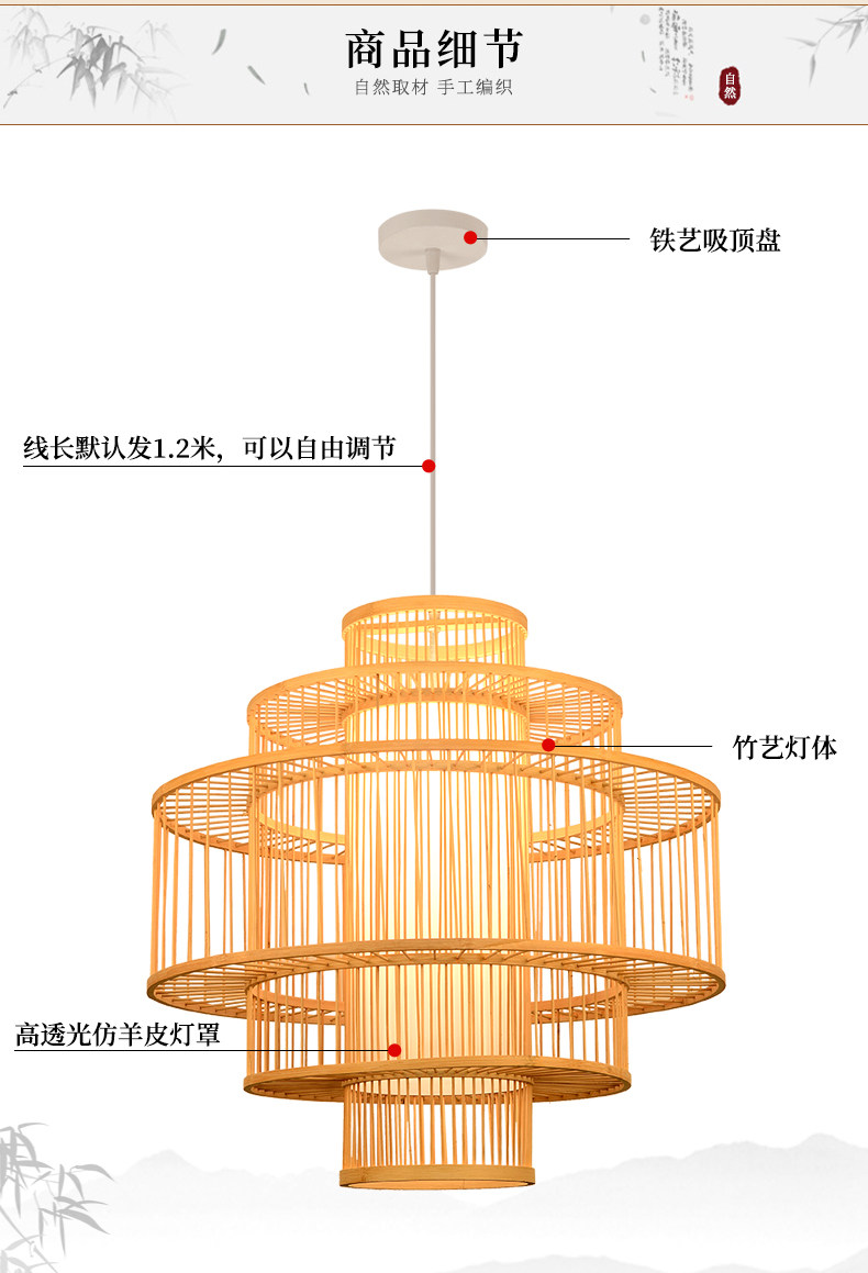 中国式竹シャンデリアバー竹編み鳥かごシャンデリア日本式茶室禅意民宿部屋特色食堂灯包郵便