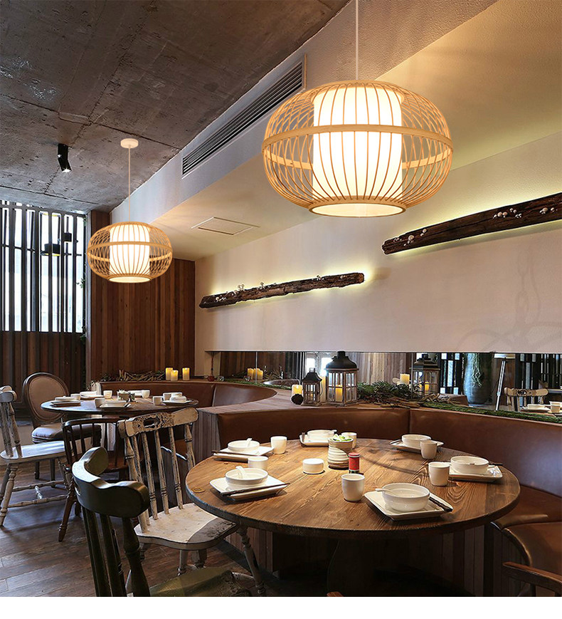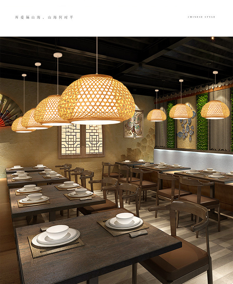 竹編み提灯シャンデリア中国式火鍋店レストラン灯店商用民宿茶室日本式竹芸灯具