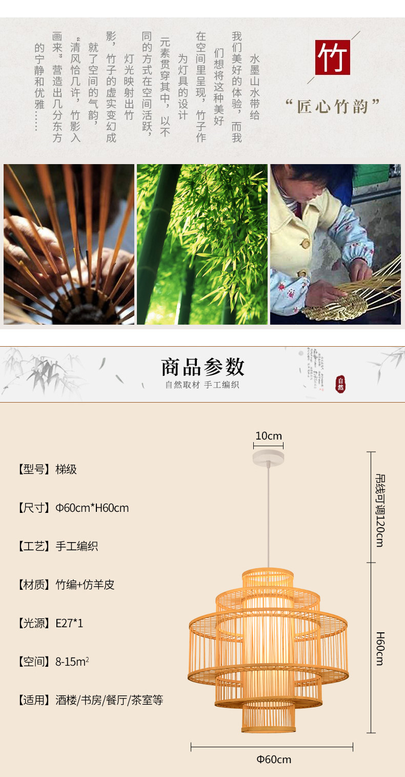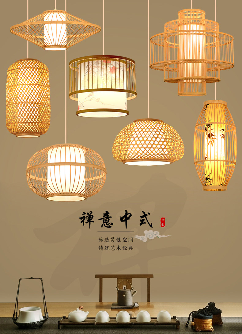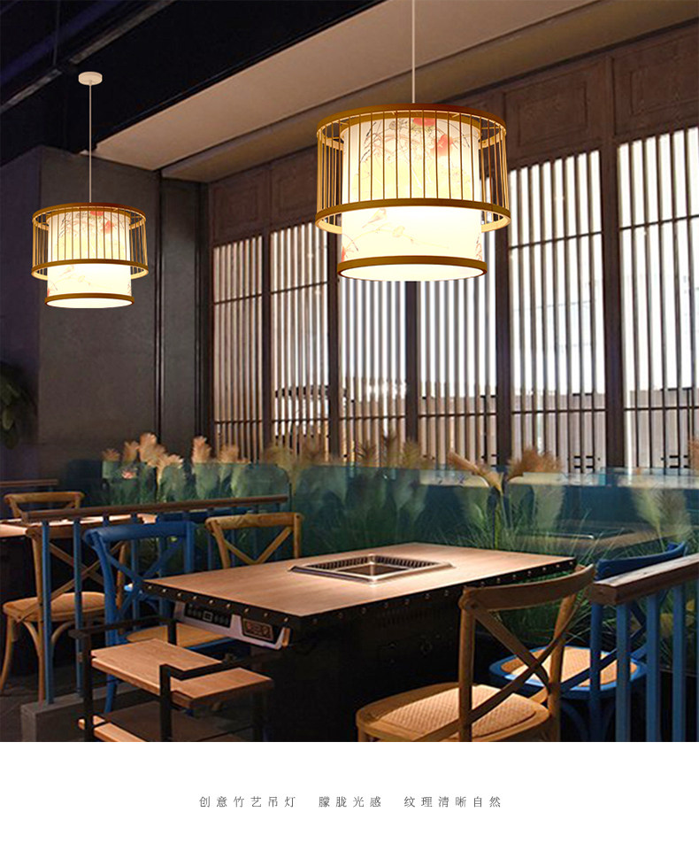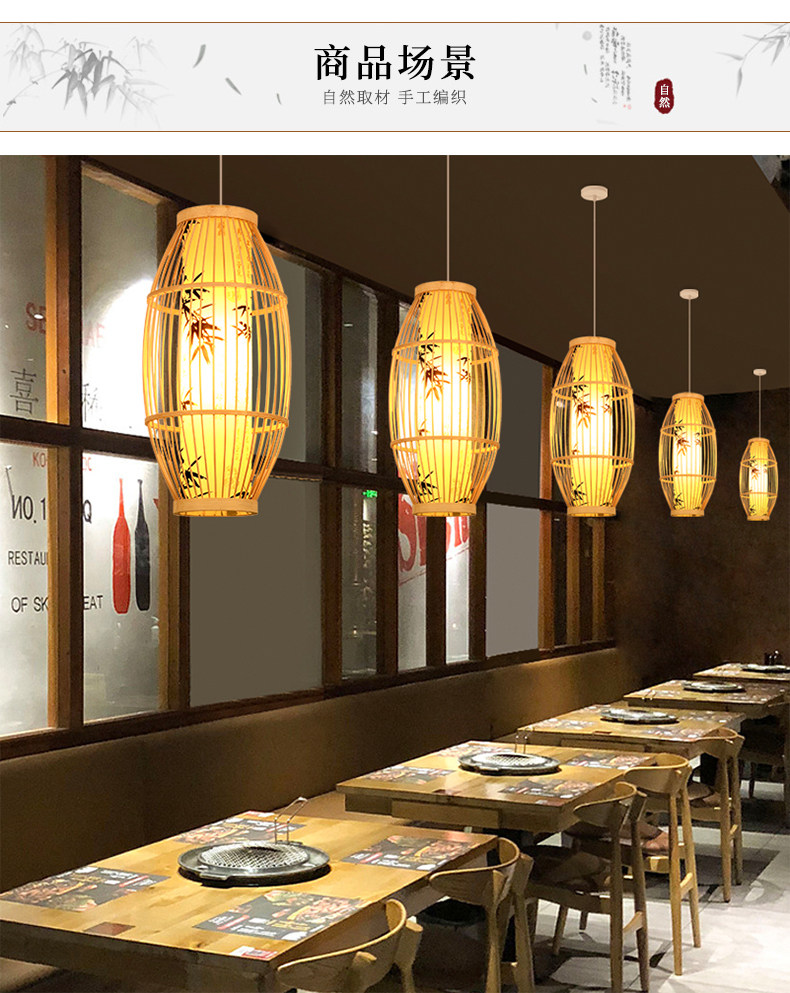 新中国式模造古創意竹編提灯茶室レストラン火鍋店日本式レトロ禅意竹芸シャンデリア