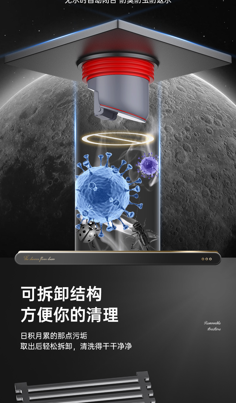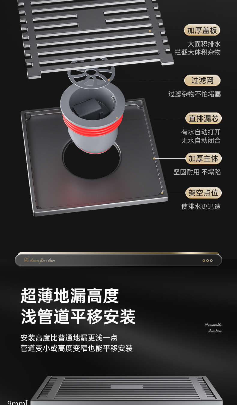 超薄地漏銃灰色シャワー超浅防虫防臭磁力芯全銅芯改水変位専用地漏