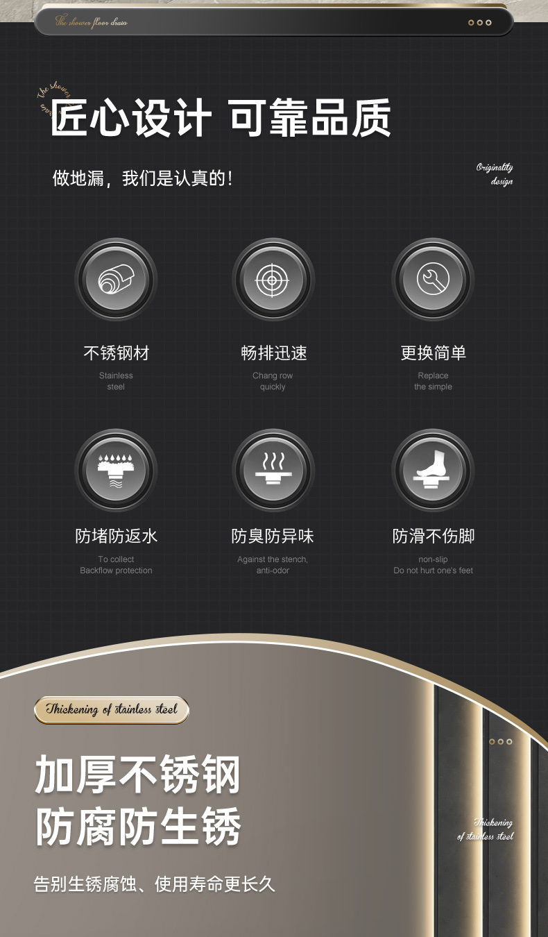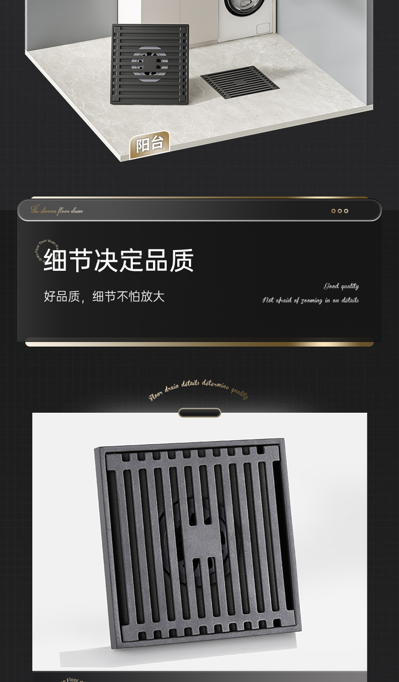 304ステンレスステルス漏れ黒色角型トイレシャワールーム隠し排水防臭漏れ