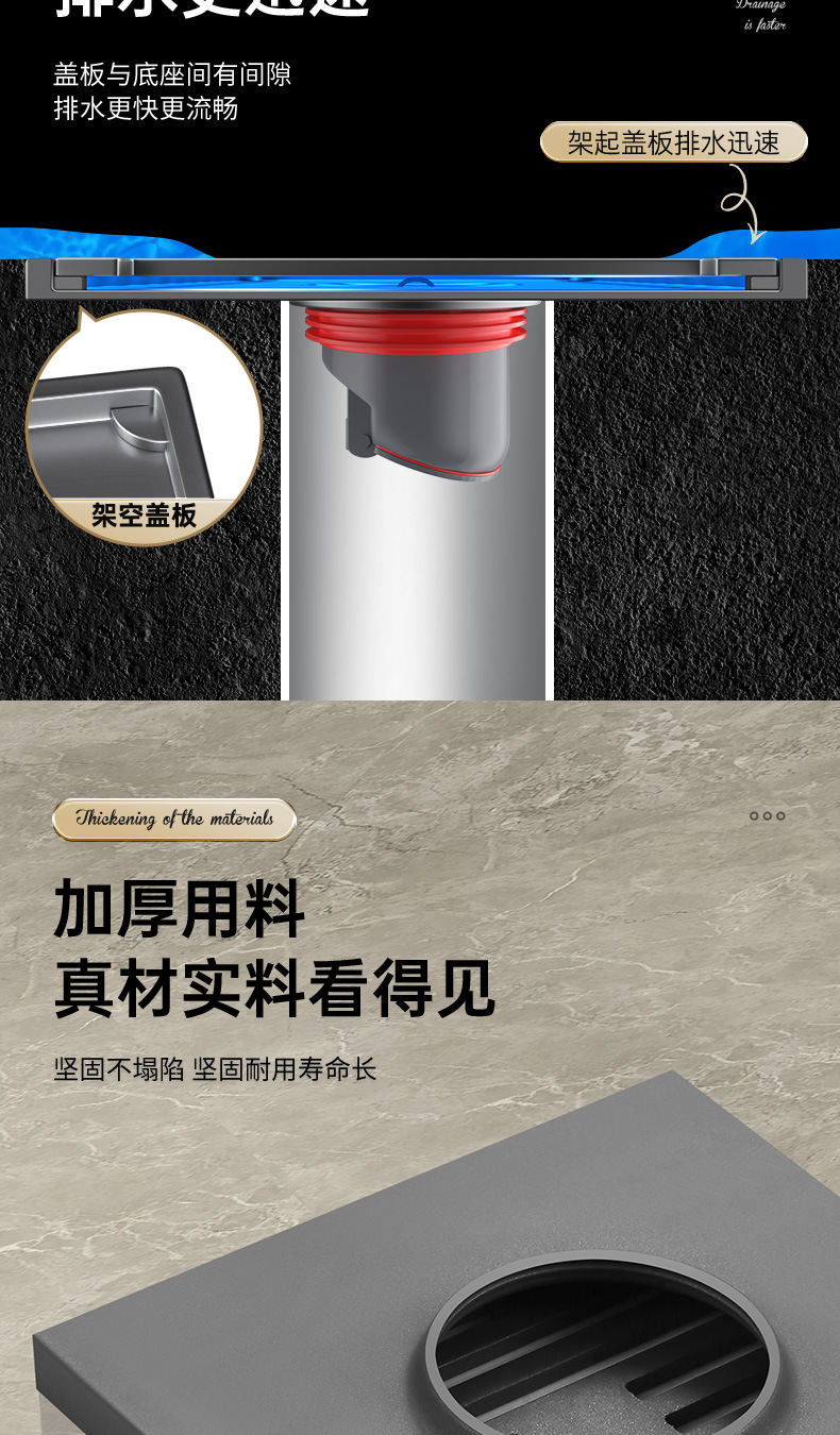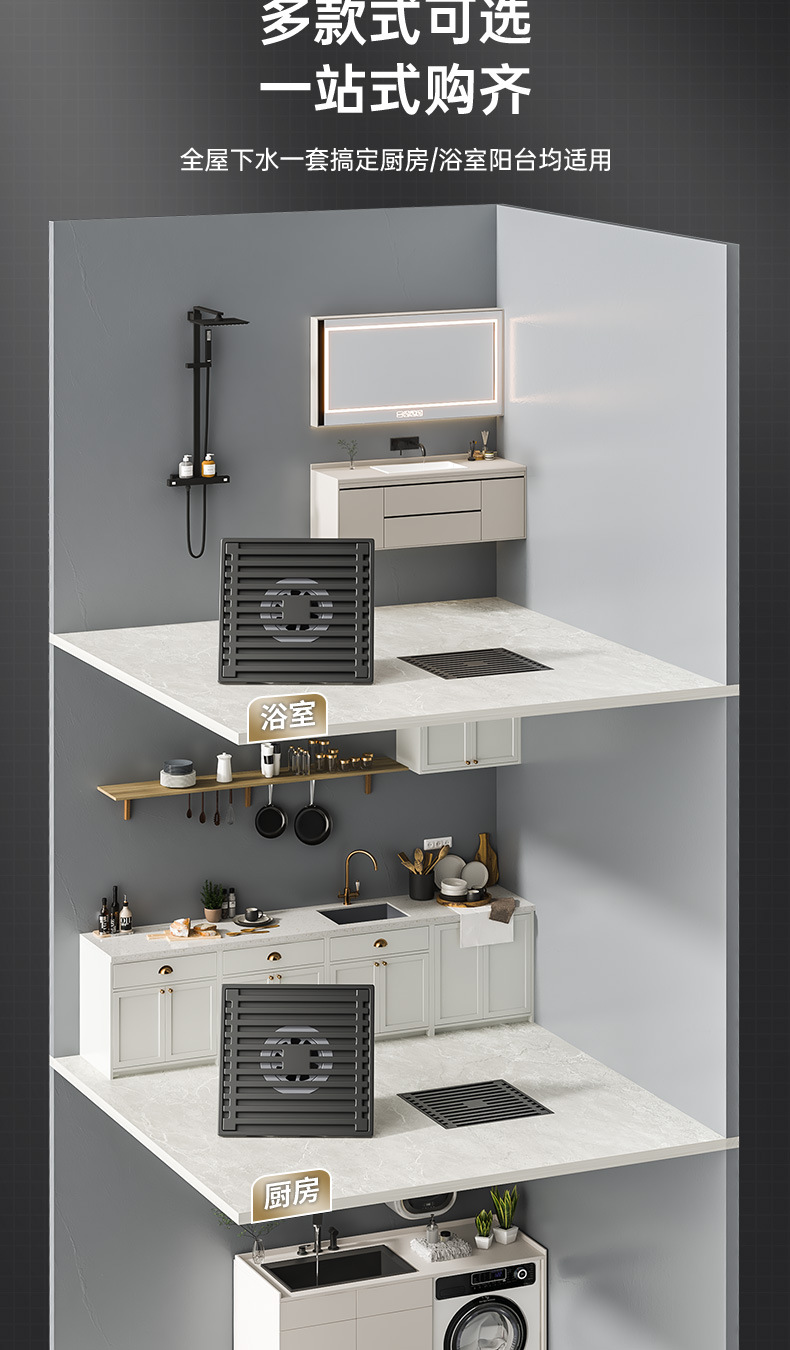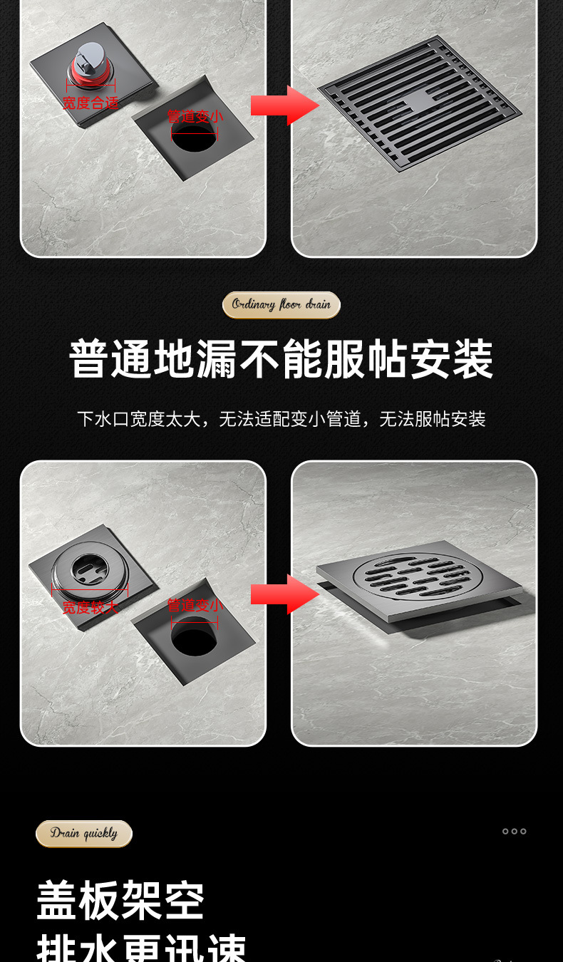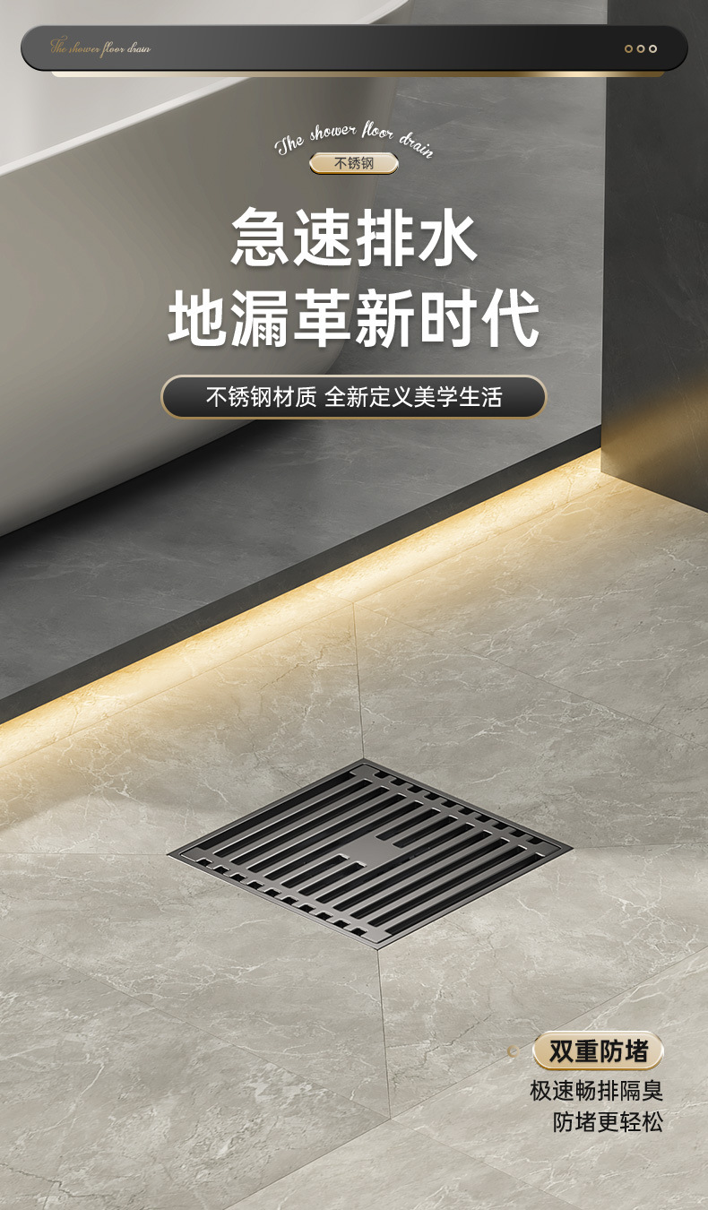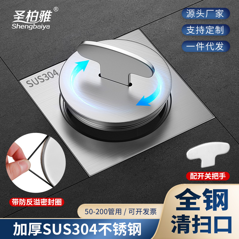 防臭地漏れSUS304ステンレス鋼厚手トイレシャワー大容量角型明るい地漏れDN75/110