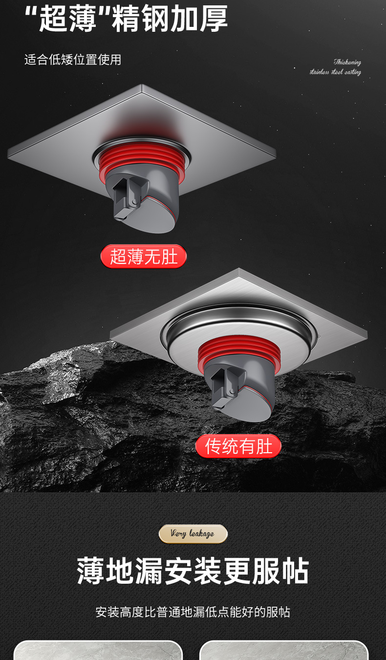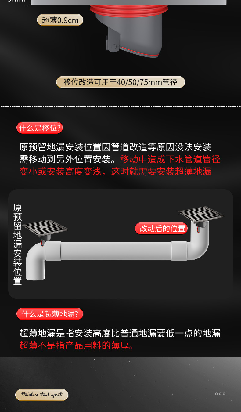 超薄地漏変位40管超浅下水管改造改管専用ステンレス防臭50管排水管