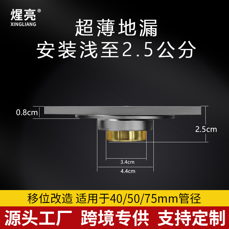 移位超薄款304不锈钢地漏卫生间无肚移位管专用地漏防虫防臭地漏