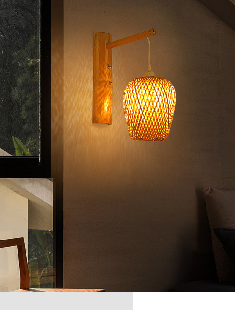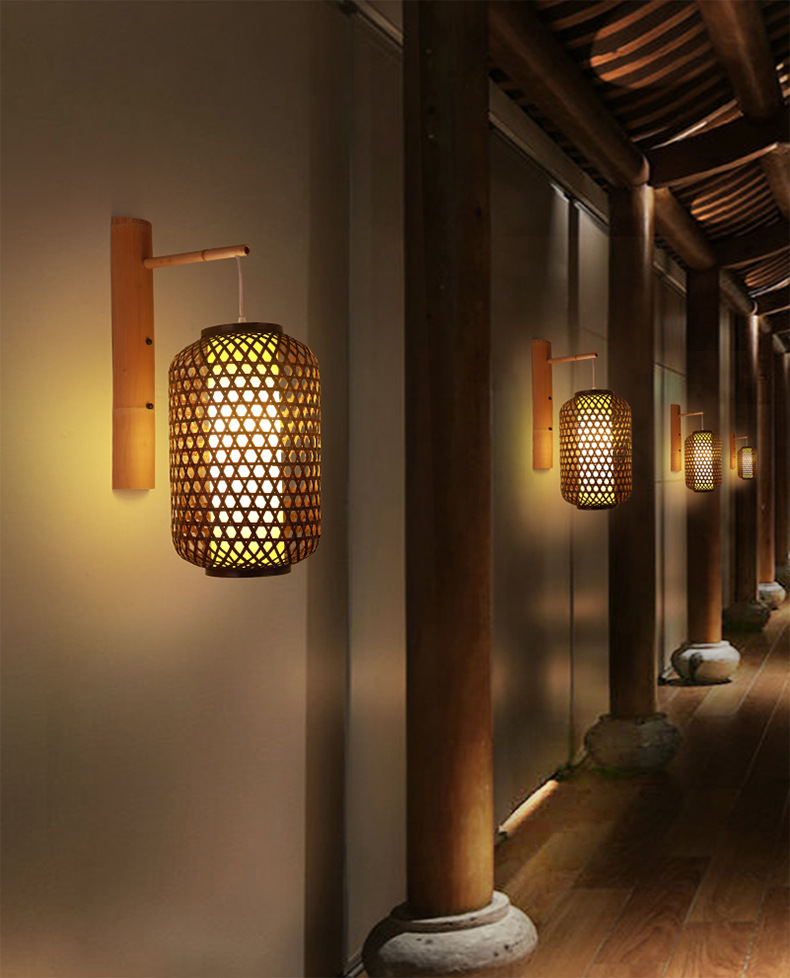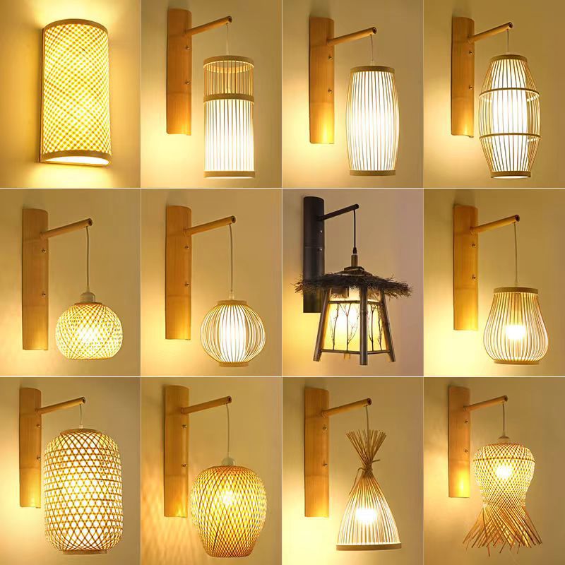 竹編み壁灯中国式竹芸灯創意個性日本式民宿茶室レストラン廊下東南アジア照明