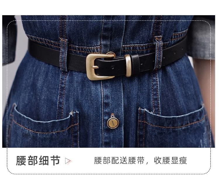 春秋は膝の長いタイプの新型の女性の復古の気質を身につけて腰を収めてやせている長袖の水洗いするデニムのワンピース