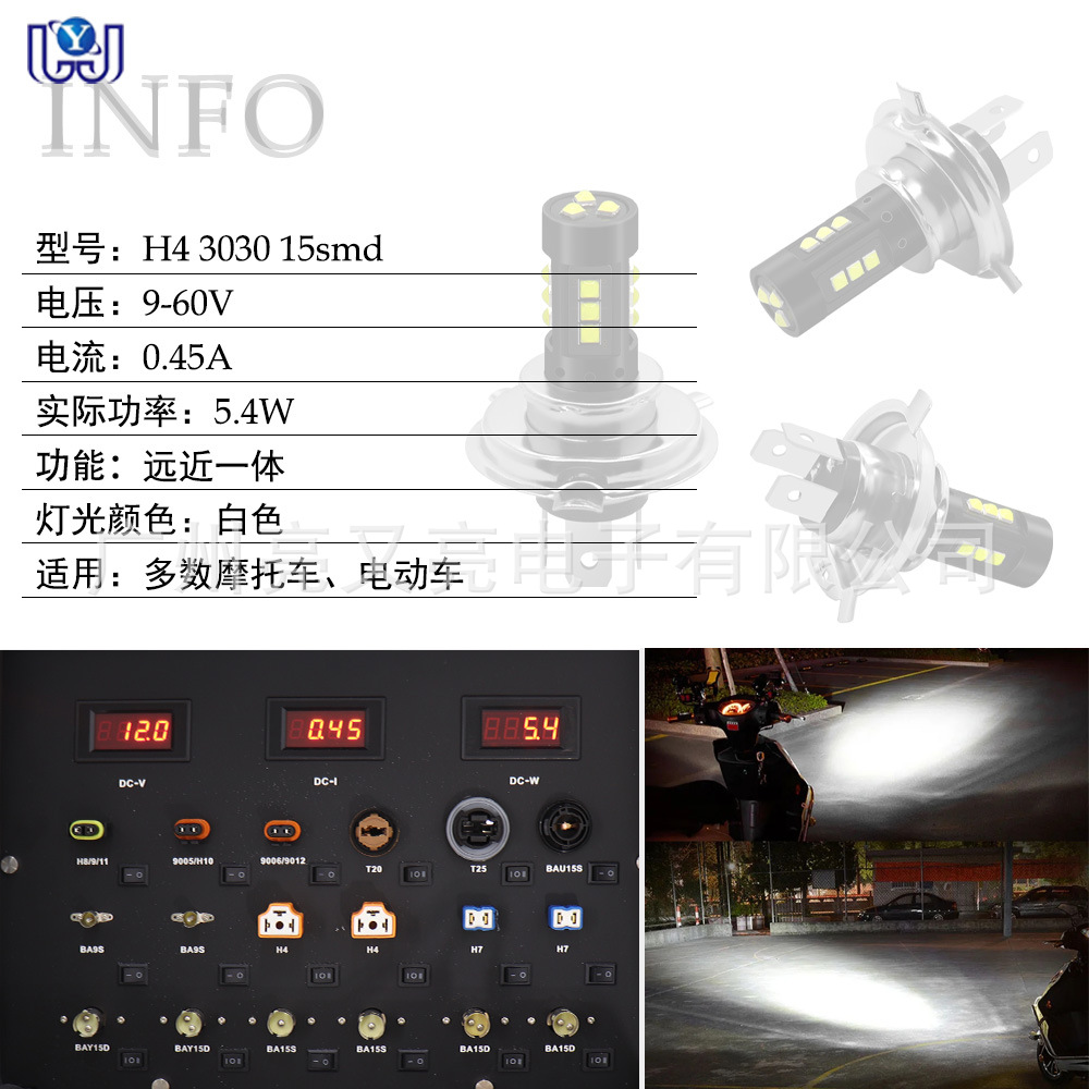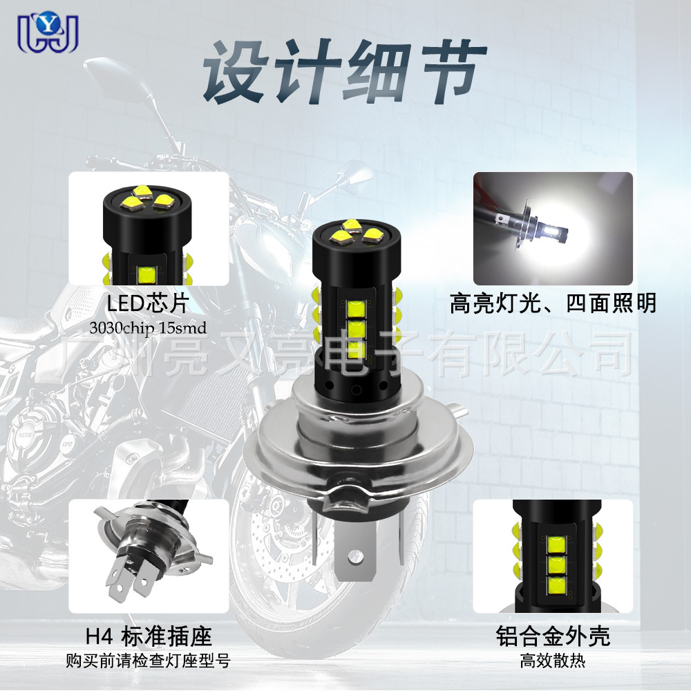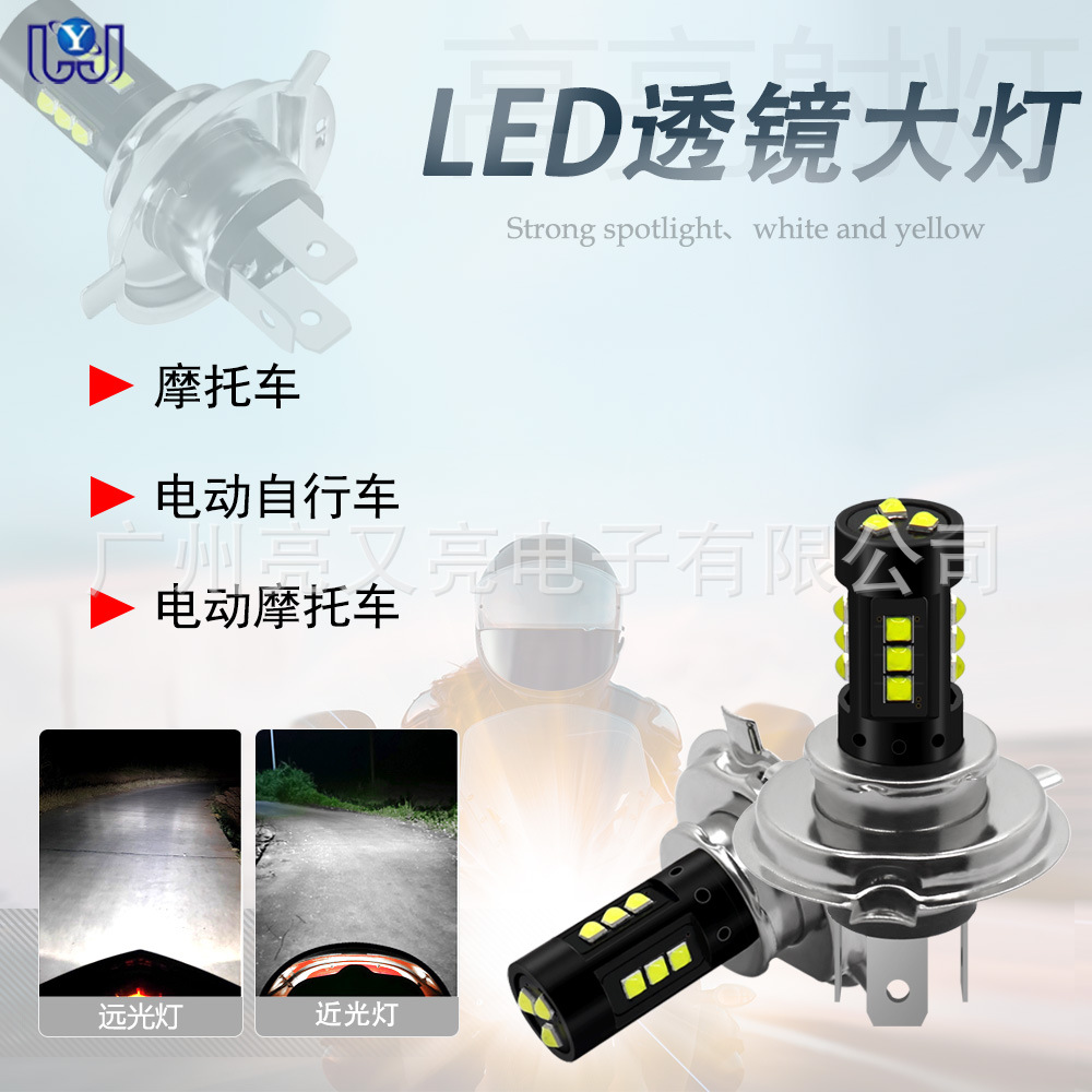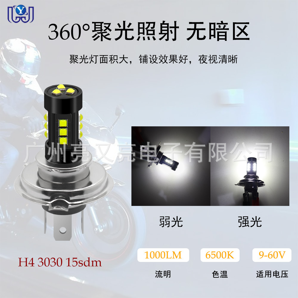 オートバイledヘッドライトh4 3030 15smd遠近一体電気自動車ヘッドライトハイライトled電球