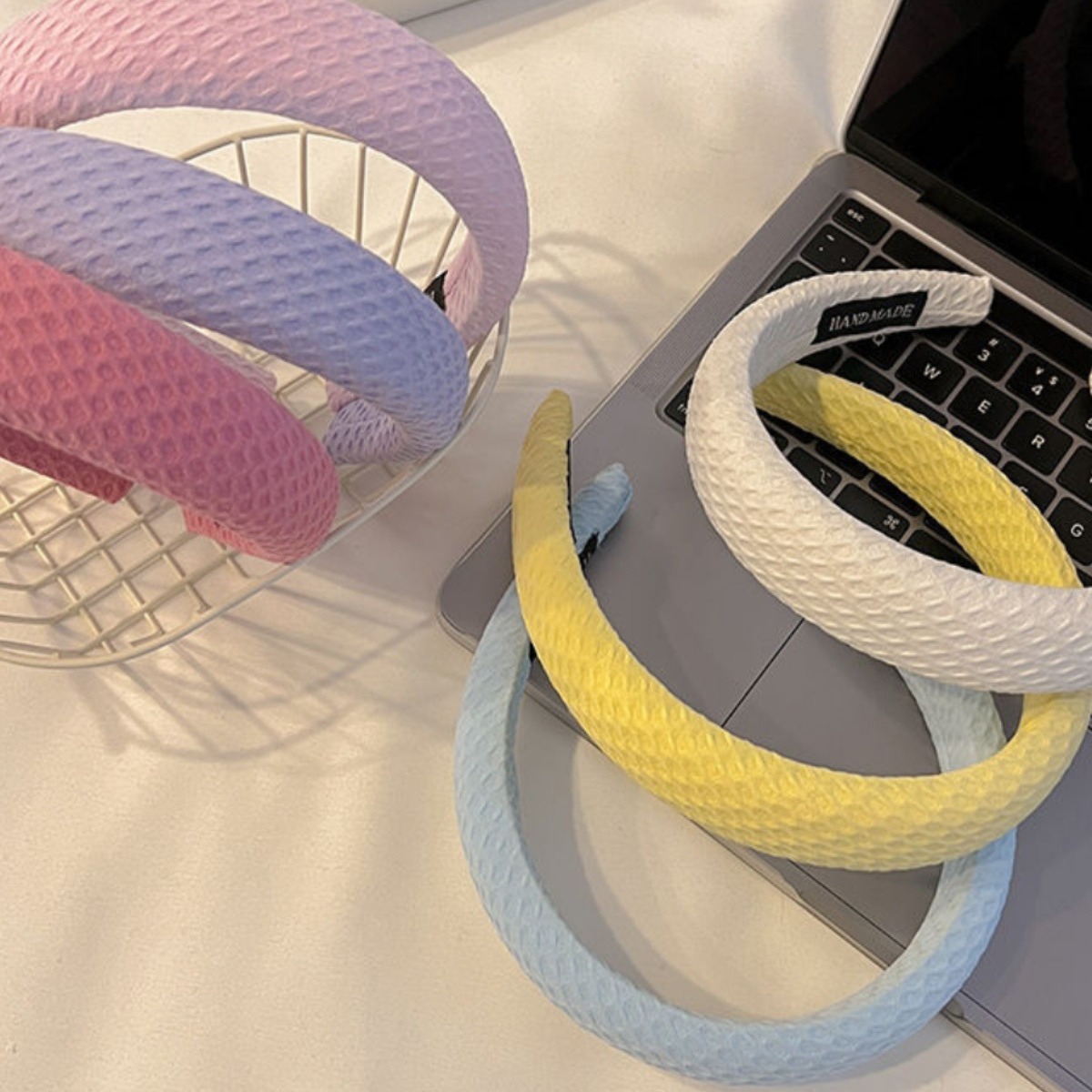 クリーム色のワッフルヘアバンド、甘くて万能なスポンジヘアバンド、外出用無地ヘアピン、洗顔用ヘアアクセサリー、髪の毛や前髪用。
