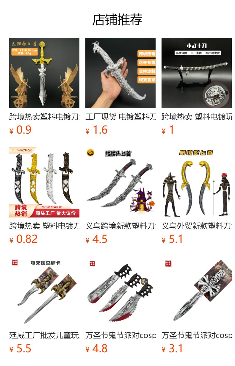 专业生产出口刀剑玩具20年,自主生产设计塑料仿真刀剑、木制玩具刀剑,有海盗系列、万圣节系列、中世纪骑士系列、日本武士刀系列、日本动漫系列、化妆舞会系列等刀、剑、盾牌相关产品,产品款式几百款,专业值得信赖。