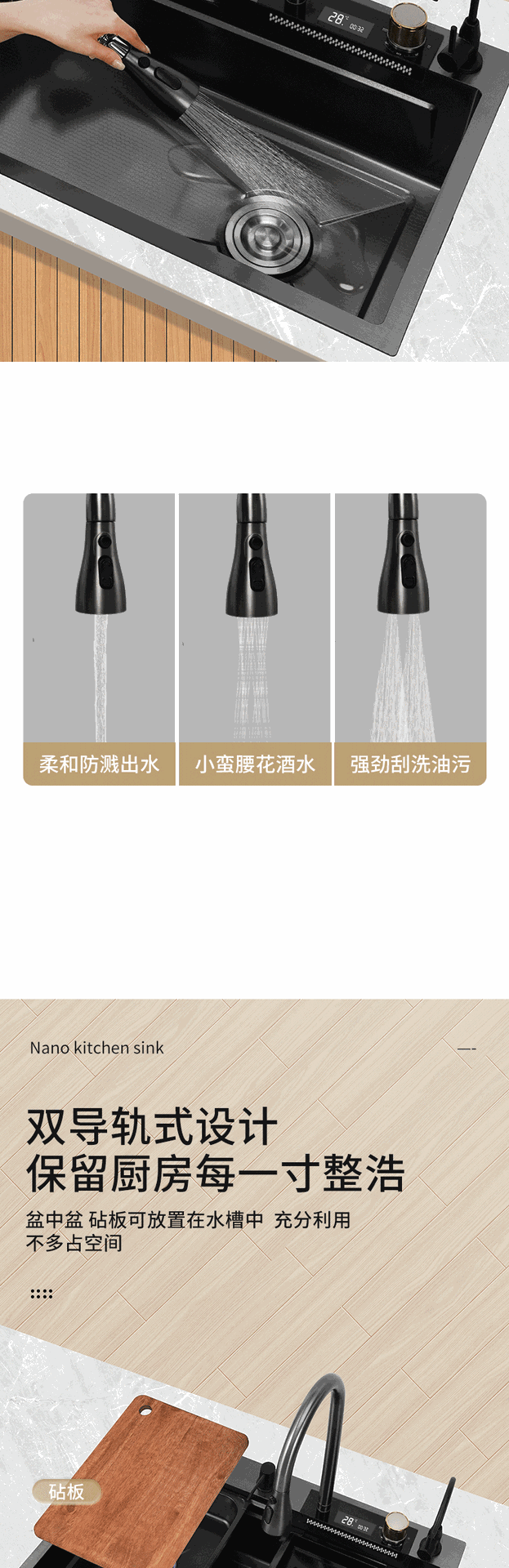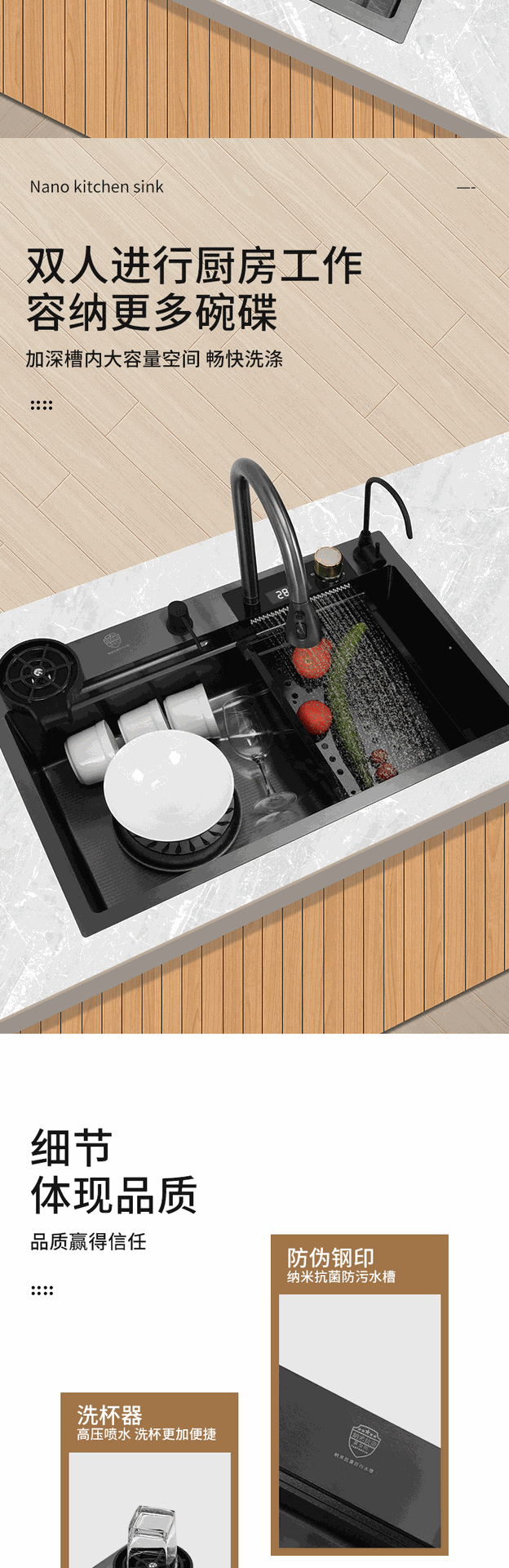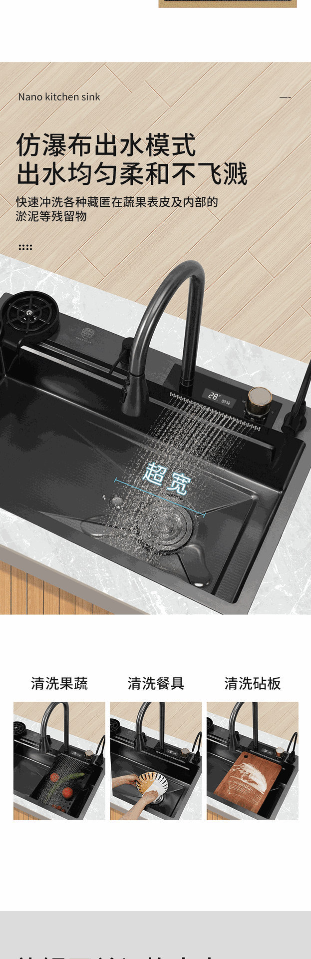 (工場直売) ハイエンドクジラ双滝出水ナノ黒ステンレス水槽家庭用キッチン皿洗い池