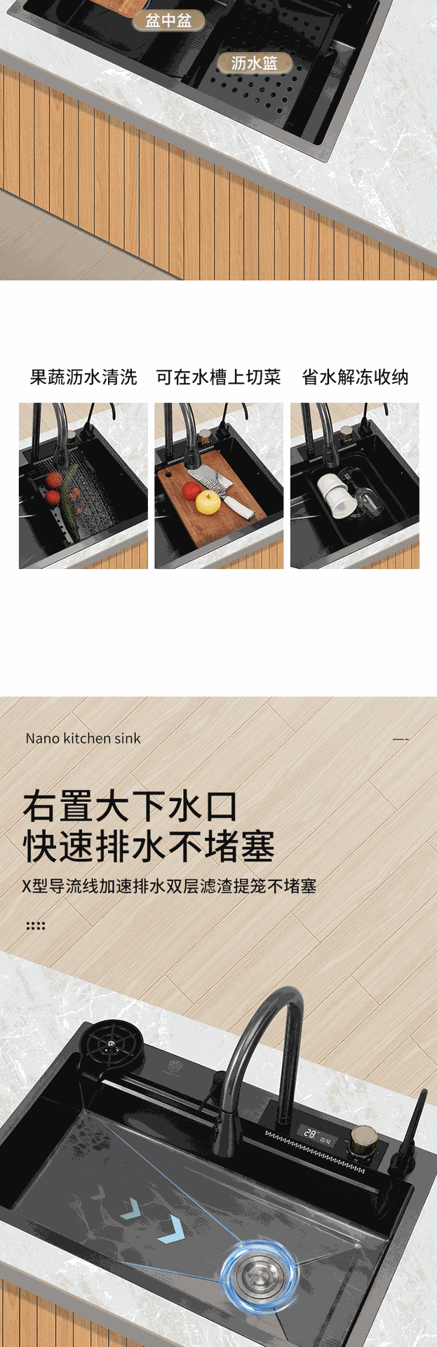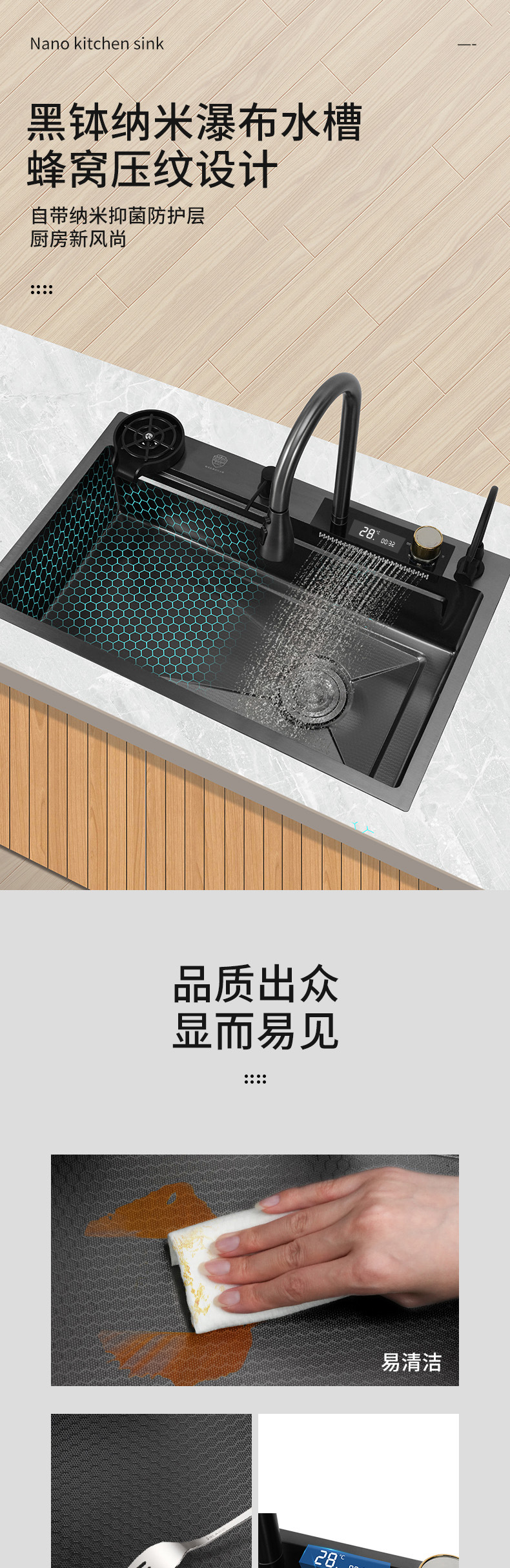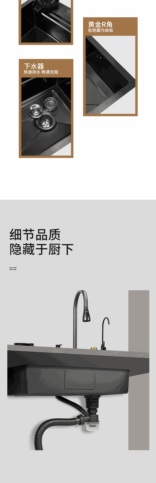 (工場直売) ハイエンドクジラ双滝出水ナノ黒ステンレス水槽家庭用キッチン皿洗い池