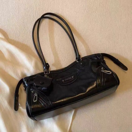 ニッチなバイク風クロスボーダーレトロバッグ、バゲットバッグのような質感のショルダーバッグ、シンプルなトートバッグ、ヴィンテージ風レディースバッグ